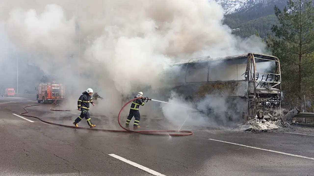 Otoyolda yanan yolcu otobüsü kullanılamaz hale geldi / Ek fotoğraflar