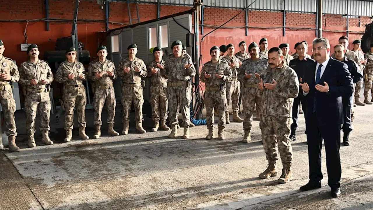 Osmaniye Emniyet Müdürlüğü Özel Harekat Şube Müdürlüğü'nde gerçekleştirilen törene; Vali Erdinç Yılmaz, İl Jandarma Komutanı Jandarma Kıdemli Albay Şener Kaytez, İl Emniyet Müdürü Mehmet Sarıbuva, emniyet müdür yardımcıları, şube müdürleri, polisler ve görev yapacak personelin aileleri katıldı. Törende konuşan Vali Yılmaz, polislerin kutsal bir göreve çıktıklarını vurgulayarak, "Allah yolunuzu açık etsin. Allah ayağınıza taş değdirmesin. Siz bizim gururumuzsunuz. Vatan sizden hizmet bekler, her zaman da en güzelini yaparsınız. Sizlerle gurur duyuyoruz. Dualarımız sizlerle. Güle güle gidin, kazasız belasız geri dönün" dedi. Duaların ardından Özel Harekat polisleri, mesai arkadaşları ve aileleriyle vedalaşarak Suriye'ye gitmek üzere yola çıktı. (DHA)