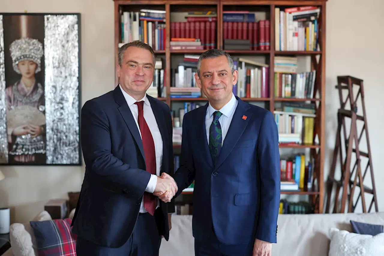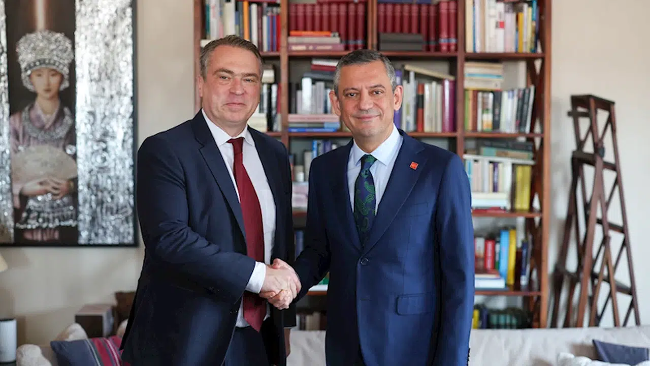 CHP Genel Başkanı Özgür Özel, Avrupa Birliği Türkiye Delegasyonu Başkanı Büyükelçi Thomas Hans Ossowski ve AB üye ülkelerinin büyükelçileri ile öğle yemeğinde bir araya geldi. Görüşmeye ilişkin fotoğraf paylaşıldı. (DHA)