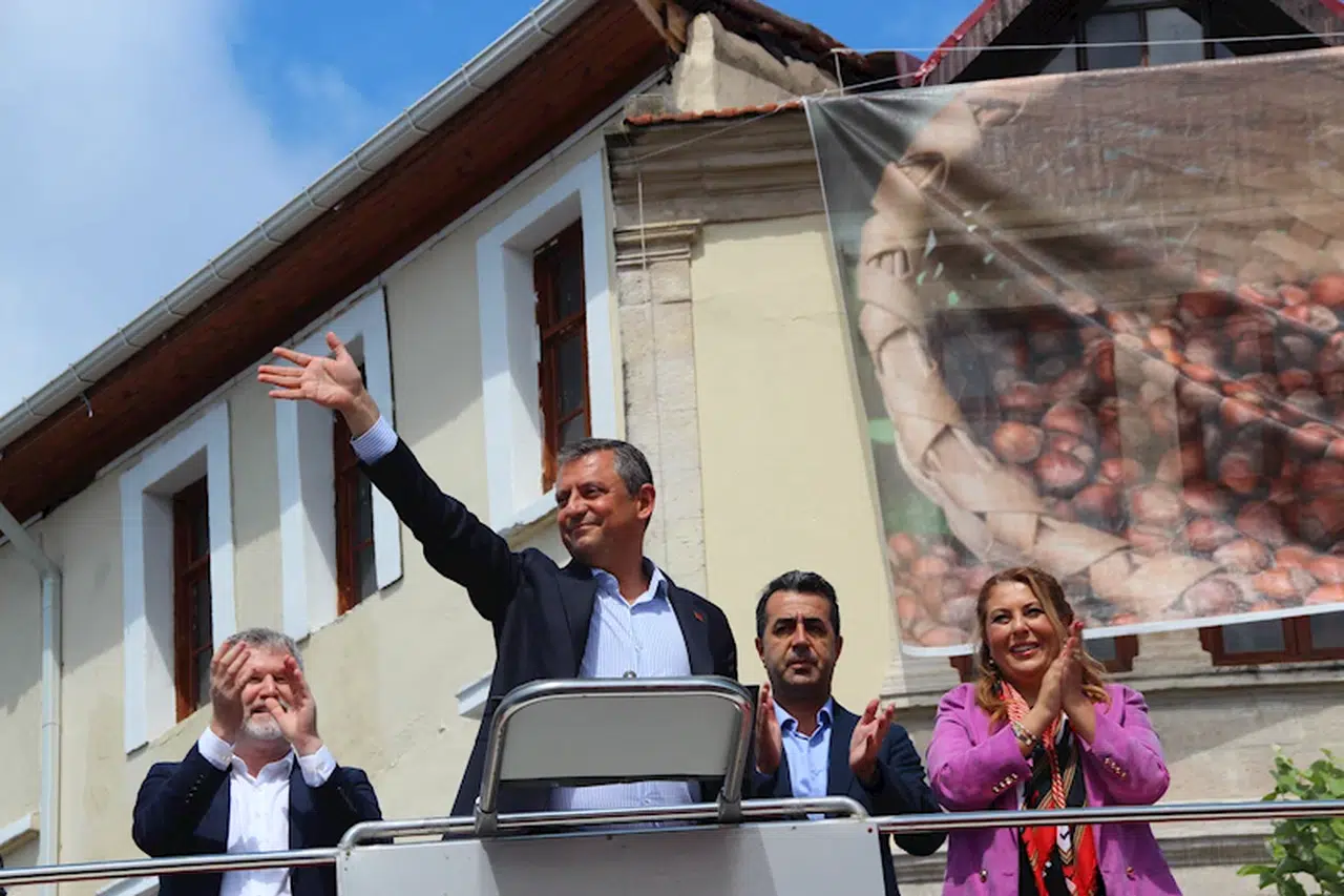 CHP Genel Başkanı Özgür Özel, Ordu’nun ardından Giresun’a geçti, Atatürk Meydanı’nda düzenlenen ‘fındık mitingi’ne katıldı. Parti otobüsü üzerinden alanda toplanan kalabalığı selamlayan Özel, herkese seçimlerde verdikleri destek için teşekkür etti.