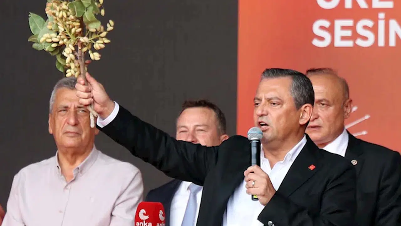CHP Genel Başkanı Özgür Özel, partisinin Gaziantep'te 'Üreticinin Sesini Duyuruyoruz' sloganıyla düzenlediği Fıstık Mitingi'ne katıldı. Özel, İstasyon Meydanı’nda düzenlenen mitingde partilileri ve fıstık üreticileriyle bir araya geldi. Fıstık üreticilerinin sorunlarına değinen Özel, çözümün bölgede Güneydoğu Birliğinin yeniden kurulmasına bağlı olduğunu ve fıstık için taban fiyat açıklanmasının zorunlu olduğunu söyledi. Özel, partisinin ittifakının en büyük ittifak olduğunu ve tüm demokratların ortak bir noktada buluşması gerektiğine de dikkat çekti.