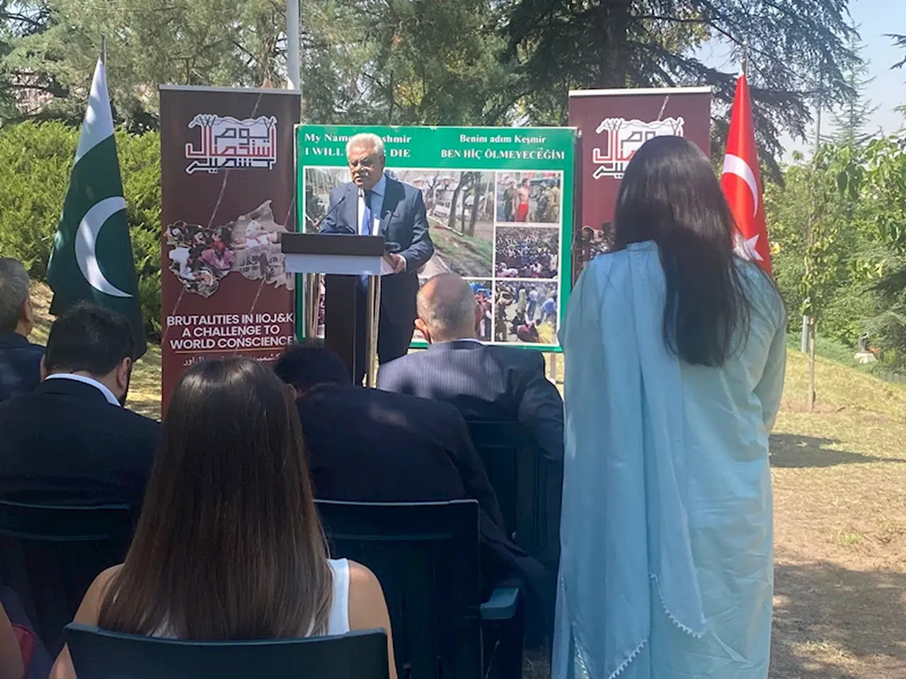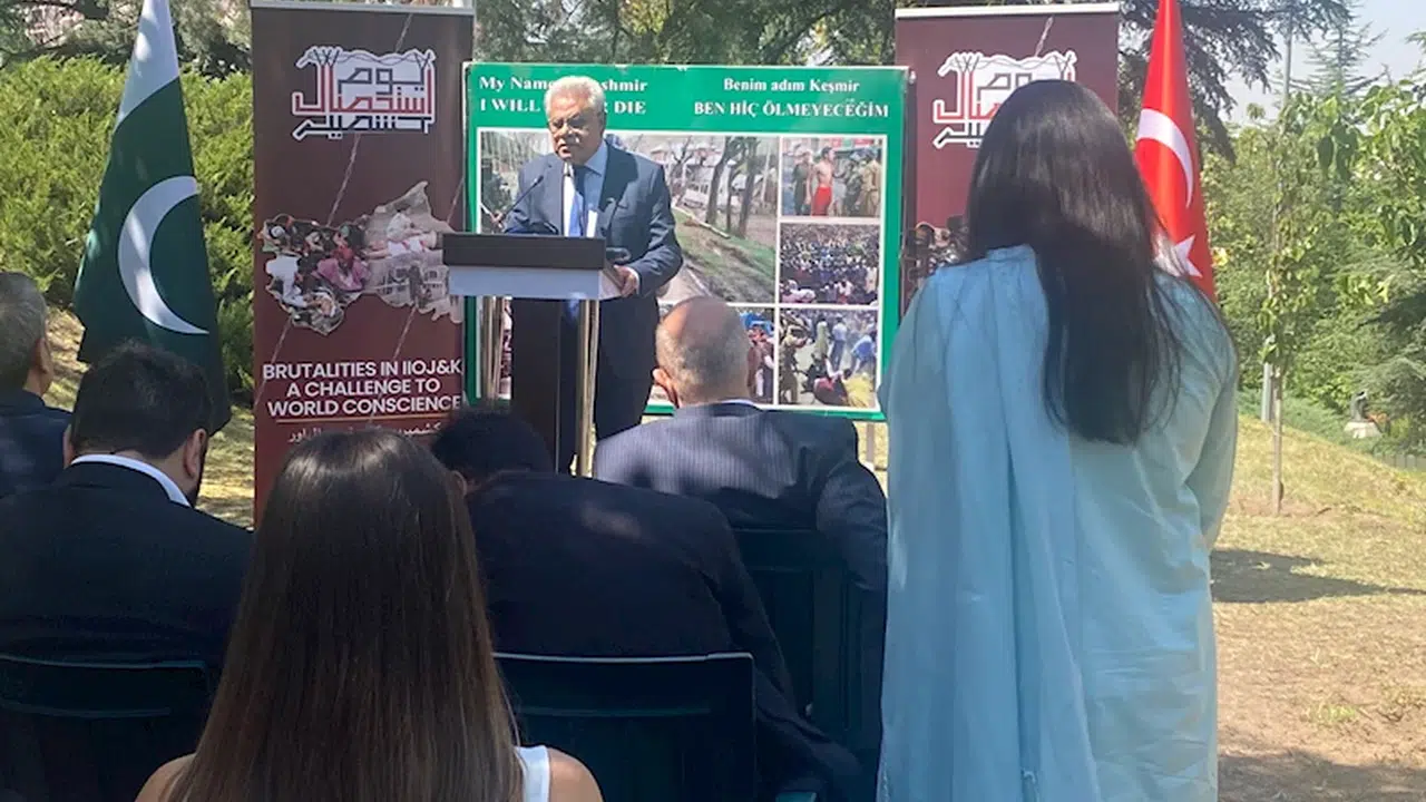 Pakistan'ın Ankara Büyükelçiliği'nde düzenlenen törene, Pakistan'ın Ankara Büyükelçisi Yusuf Cüneyd, Daimi Keşmir Temsilcisi Rasheed Turabi, Türkiye-Pakistan Parlamentolararası Dostluk Grubu Başkanı Ali Şahin katıldı. Keşmir sorununu anlatan fotoğraf sergisinin de yer aldığı törende konuşan Büyükelçi Cüneyd, Hindistan'ın 5 Ağustos 2019'da, Keşmir halkını kendi topraklarında güçsüzleştirmek, oy haklarını ellerinden almak ve mülksüzleştirmek amacıyla Keşmir'i yasa dışı olarak işgal ettiğini belirterek, "Bugün Cammu ve Keşmir'in özel statüsünü kaldırmasının üzerinden 5 yıl geçtiği gündür. Burada, Keşmir halkıyla dayanışmamızı ifade etmek ve kendi kaderlerini tayin hakkı için verdikleri haklı mücadeledeki dayanıklılıklarına bir saygı duruşunda bulunmak için toplandık" dedi.