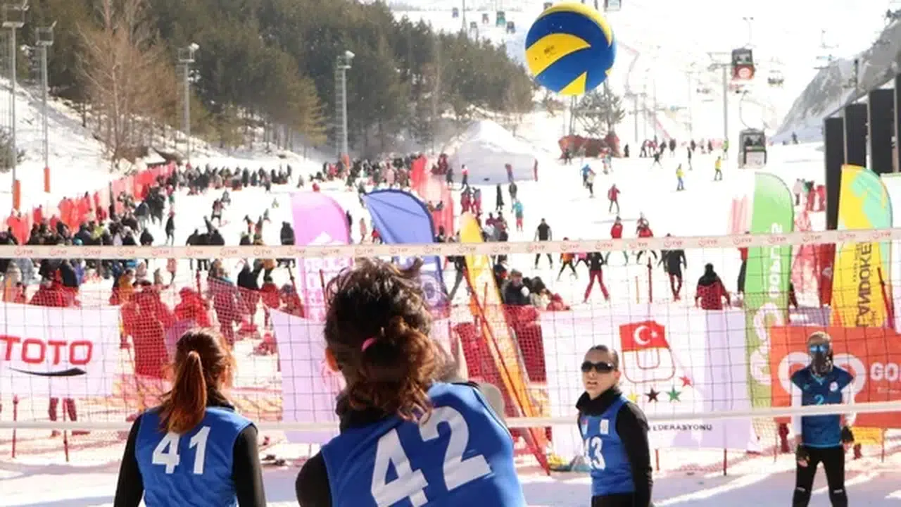 Türkiye Üniversite Sporları Federasyonu tarafından Erzurum'da düzenlenen Üniversiteler Arası Türkiye Kar Voleybolu Şampiyonası devam ediyor. Palandöken Dağı'nın 2 bin 500 rakımındaki acemi pistinin başlangıç noktasında organize edilen şampiyonaya 22 üniversiteden yaklaşık 100 sporcu katılıyor. Erzurum Voleybol İl Temsilcisi Ragıp Koçak, 11 erkek, 11 kadın takımıyla şampiyonanın düzenlendiğini söyledi. Şampiyonanın 13 Şubat'ta sona ereceğini belirten Koçak, "Kar voleybolu yeni bir branş ve yakın zamanda olimpiyatlara girmesini bekliyoruz. Erzurum olarak kar voleyboluna başlangıç yaptık. Ejder 3200 önderliğinde bu turnuvaya başladık. Nasipse önümüzdeki ay burada uluslararası bir organizasyona ev sahipliği yapacağız. Kayak yapmaya gelen tatilciler kısa molalar vererek kar voleybolu maçlarına da büyük ilgi gösteriyor" diye konuştu.