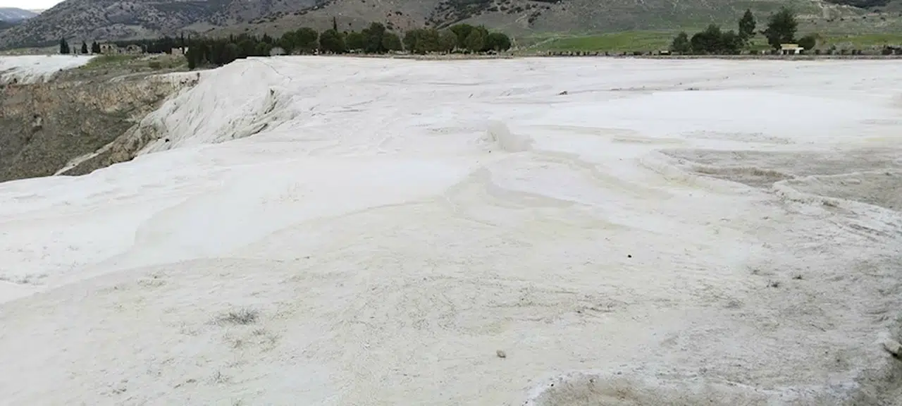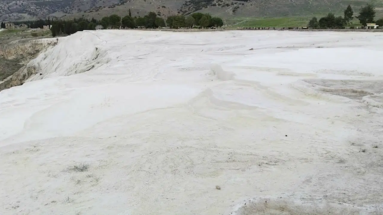Cavit AKGÜN/DENİZLİ, (DHA)- DENİZLİ'nin UNESCO Dünya Mirası Listesi'nde yer alan ve kuraklıkla boğuşan önemli turizm merkezi Pamukkale'de incelemelerde bulunan Muğla Sıtkı Koçman Üniversitesi (MSKÜ) İnşaat Mühendisliği Bölümü Su Kaynakları Anabilim Dalı Başkanı Doç. Dr. Ceyhun Özçelik, "400 litre saniye olan su debisi, 100-150 litre saniyeye kadar düşmüş durumda" dedi.