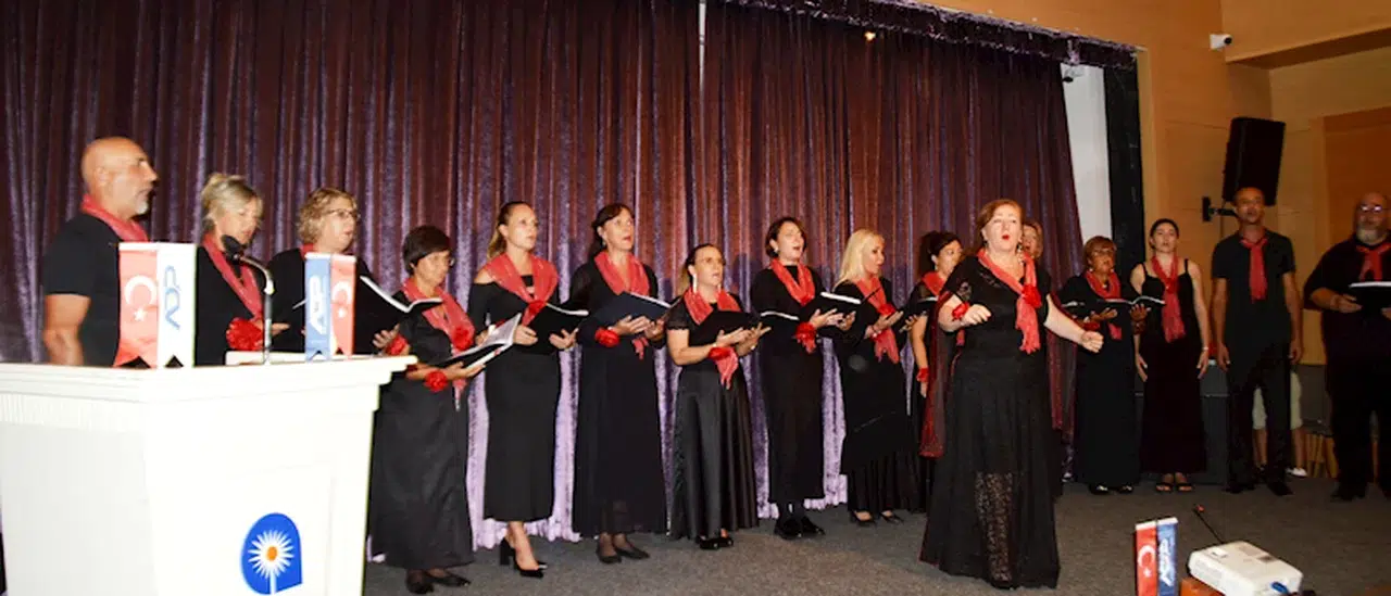 Doç. Dr. Fatih Uslu'nun moderatörlüğünde gerçekleşen panel öncesi de Antalya'da yerleşik farklı ülkelerden kadınların yer aldığı şef Zera Vareldzhi'nin yönetimindeki Konyaaltı Belediyesi Dostluk korosu sahne aldı. Koro, 1 dakikalık saygı duruşunun ardından İstiklal Marşı ile İzmir Marşı'nı büyük bir coşku ve heyecanla seslendirdi. Katılımcılar koroyu alkış yağmuruna tuttu.