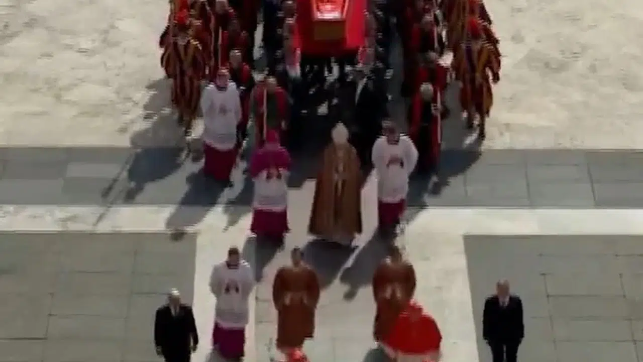 Tören sırasında, Vatikan muhafızlarının eşlik ettiği alay, bazilikanın önünde dualarla karşılandı. Naaşın taşındığı sırada, insanların Papa Franciscus’u görmeye çalıştığı anlar yer aldı.