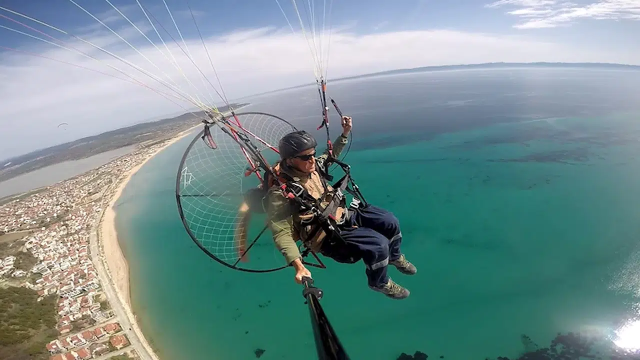 Ünsal YÜCEL/EDİRNE, (DHA)- EDİRNE'nin Keşan ilçesinde 15 yıldır paramotor pilotluğu yapan Yılmaz Özkaya (68), uçuş sırasında kamerasıyla Ege Denizi'nin kuzeydoğusunda yer alan Saros Körfezi, yerleşim bölgeleri, köy ve beldeler ile devlet yatırımlarını da çekerek paramotor sporunun tanıtımını yapıyor.