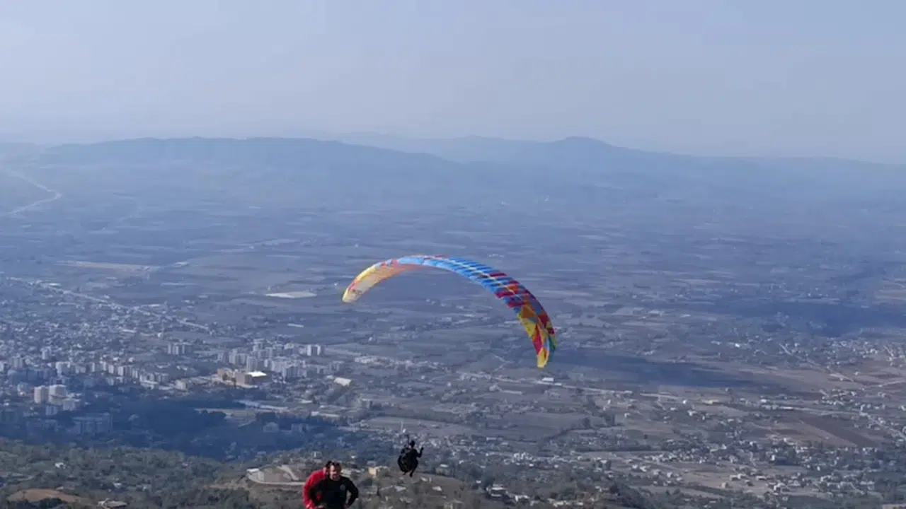 Kamil ŞEKER/DÜZİÇİ(Osmaniye),(DHA)- OSMANİYE'nin Düziçi ilçesinde yamaç paraşütü sporcuları, Ulu Önder Mustafa Kemal Atatürk'ün anısına bin 800 rakımlı Dumanlı Yaylası'nda uçuş yaptı.