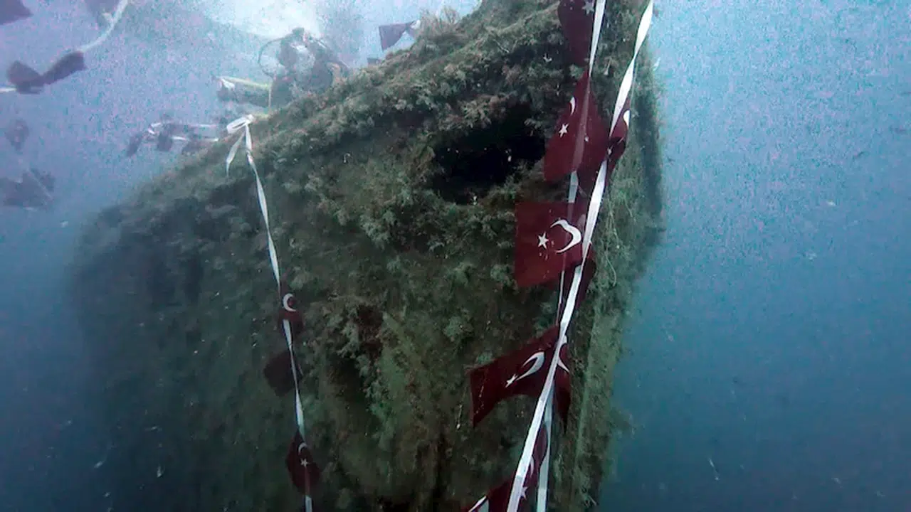 Levent YENİGÜN/KEMER (Antalya), (DHA)- ANTALYA'nın Kemer ilçesinde 107 yıl önce batırılan ve şu anda dünyanın en iyi 100 dalış noktasından biri haline gelen Paris 2 batığına Akdeniz Üniversitesi'nden öğrenciler dalış yaptı. Öğrenciler, geminin batırılırken isabet aldığı 110 top mermisine ithafen, batığın çevresine 110 Türk bayrağı astı.