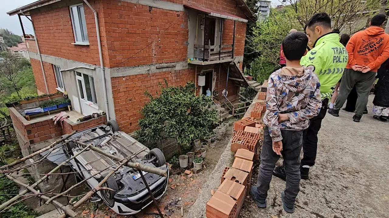 Olay, saat 15.30 sıralarında İncivez Mahallesi Kamelya Sokak'ta meydana geldi. Kumsal G., idaresindeki 67 SK 953 plakalı otomobilini evinin önünde park etmek isterken kontrolü kaybetti. Otomobil 2 metre yüksekten bahçeye düştü. Otomobil ters dönerken kazanın sesini duyanlar panik yaşadı. İhbar üzerine bölgeye polis, sağlık ve itfaiye ekipleri sevk edildi. Yapılan kontrolde sürücü Kumsal G., elinden yaralandığı belirlendi. Ambulansta müdahale edilen sürücü hastaneye gitmedi. (DHA)