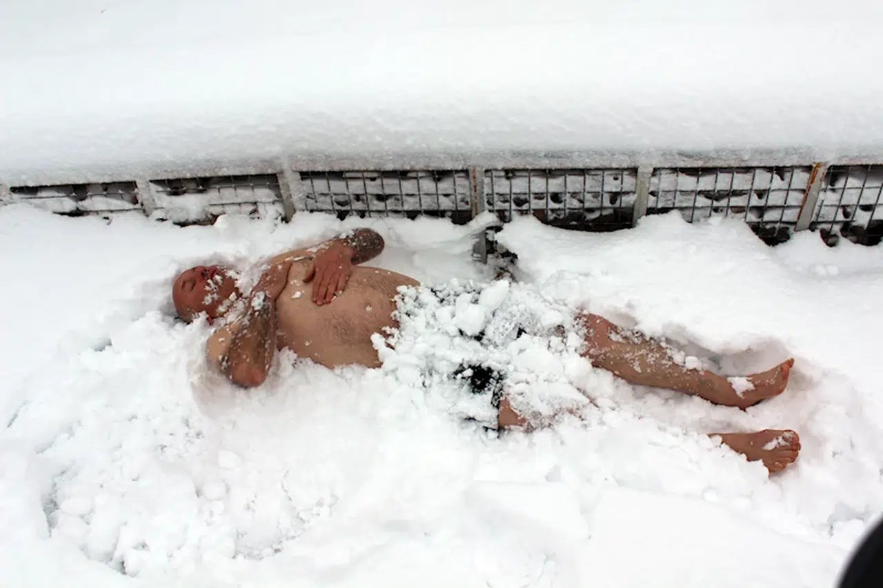 Erkan ALTUNTAŞ/AKSARAY, (DHA)- AKSARAY'da bir turizm firmasında çalışan Sami Yüksel (65) mevsimin ilk kar yağışıyla birlikte parkta kar banyosu yaptı.