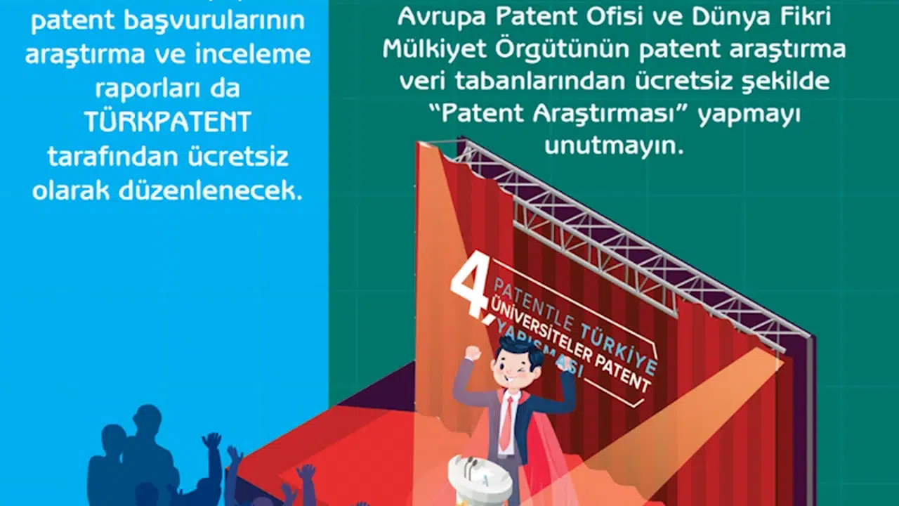 ANKARA,(DHA)- Üniversite öğrencilerinde küresel rekabetin araçlarından biri olan patent konusunda farkındalık oluşturulması, buluş faaliyetlerine özendirilmesi ve akademik çalışmalarda veya profesyonel meslek hayatlarında patent dokümanlarını kullanmalarının sağlanması amacıyla Sanayi ve Teknoloji Bakanlığı bağlı kuruluşu Türk Patent ve Marka Kurumu (TÜRKPATENT) tarafından düzenlemekte olan Patentle Türkiye – 4. Üniversiteler Patent Yarışması başvuruları devam ediyor.
