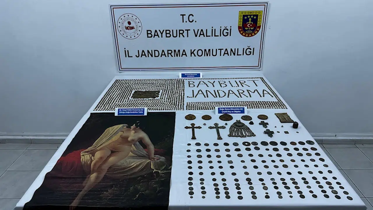 İl Jandarma Komutanlığı’nın tarihi eser ticareti ve izinsiz kazı suçlarına yönelik çalışmalarında, Doğu ve Güneydoğu Anadolu bölgelerinden çıkarılan eserlerin, batı illerine satılmak üzere hazırlandığı ve bir kısmının da yurt dışına çıkarılacağı yönünde bilgi üzerine harekete geçti. 21 şüpheliyi takibe alan ekipler, 14 ilde belirlenen ikamet, araç ve iş yerlerine eş zamanlı operasyon gerçekleştirdi. Operasyon kapsamında yapılan aramalarda; Osmanlı dönemine ait 3 bin 72 sikke, Doğu Roma ve Bizans dönemine ait yaklaşık bin yıllık olduğu değerlendirilen 178 sikke ve çeşitli tarihi eser nitelikteki objeler ele geçirildi. Operasyonların Bayburt ayağında, şüphelilerin 6 milyon avro değer biçip satışa sundukları, ressam Pablo Picasso'ya ait olduğu ileri sürülen nü tablo da ele geçirildi. Tablonun gerçek olup olmadığının belirlenmesi için çalışma başlatılırken, operasyon kapsamında yakalanan 21 şüpheli de gözaltına alındı. Şüphelilerden 19'u jandarmadaki ifadeleri sonrası serbest bırakılırken, 2 şüpheli ise sevk edildiği adliyede çıkarıldıkları hakimlik tarafından adli kontrol tedbiriyle serbest kaldı. Bu arada operasyon ve baskın anları da jandarma kamerasına yansıdı. (DHA)