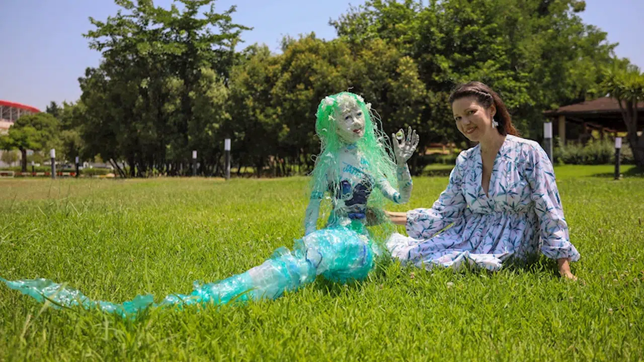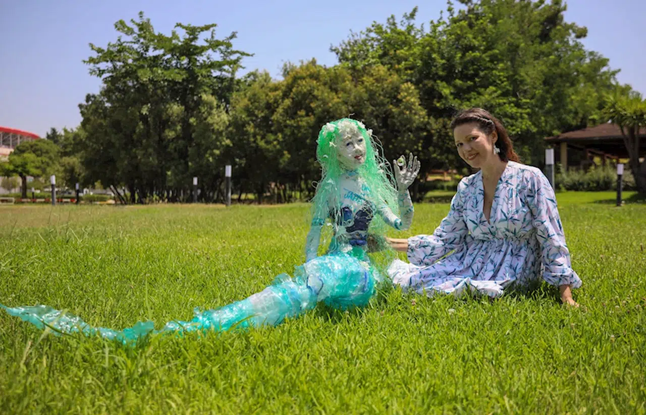 Rusya’da 12 yıl önce plastik atıklardan eserler üretmeye başlayan Güzel Amirova, 4,5 yıl önce Antalya’ya taşındı. Sıfır atığa ve plastik ürünlerin geri dönüşümüne dikkati çekmek isteyen Amirova, burada da heykeller üretmeye başladı. Bugüne kadar yüzlerce heykel yapan Amirova, kendi kullandığı veya arkadaşlarının getirdiği plastik atıkları heykellere, takılara, kıyafetlere dönüştürüp festivallerde sergiliyor. İnsanlara geri dönüşümün önemini anlatmak isteyen Amirova, heykellerin yapımında ise hiçbir yapıştırıcı madde kullanmıyor, plastiklere şekil vermek için mum ateşinden yararlanıyor. Geri dönüşümü oldukça zor olan plastik poşetlerden heykel yapan Amirova, yaptıklarını görenlere geri dönüşümün önemini anlatıyor. Amirova, heykellerinin açık havada sergileyerek, daha çok kişiye ulaşabilmek istiyor.