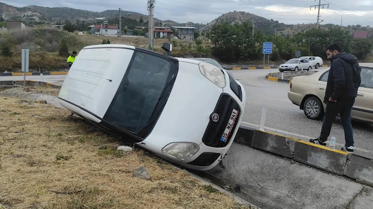 Polis memuru H.A.'nın kullandığı Burdur İl Emniyet Müdürlüğü Çocuk Şube Müdürlüğü'ne ait sivil ekip aracı dün saat 19.00 sıralarında Organize Sanayi Bölgesi Kavşağı'nda yağmur nedeniyle kayganlaşan yolda sürücünün direksiyon hakimiyetini kaybetmesi sonucu refüje devrildi. İhbar üzerine olay yerine sağlık ve polis ekipleri sevk edildi. Ekip aracındaki iki polis memuru kazadan yara almadan kurtuldu. Ekip aracı çekici yardımıyla Emniyet Müdürlüğü otoparkına çekildi. (DHA)