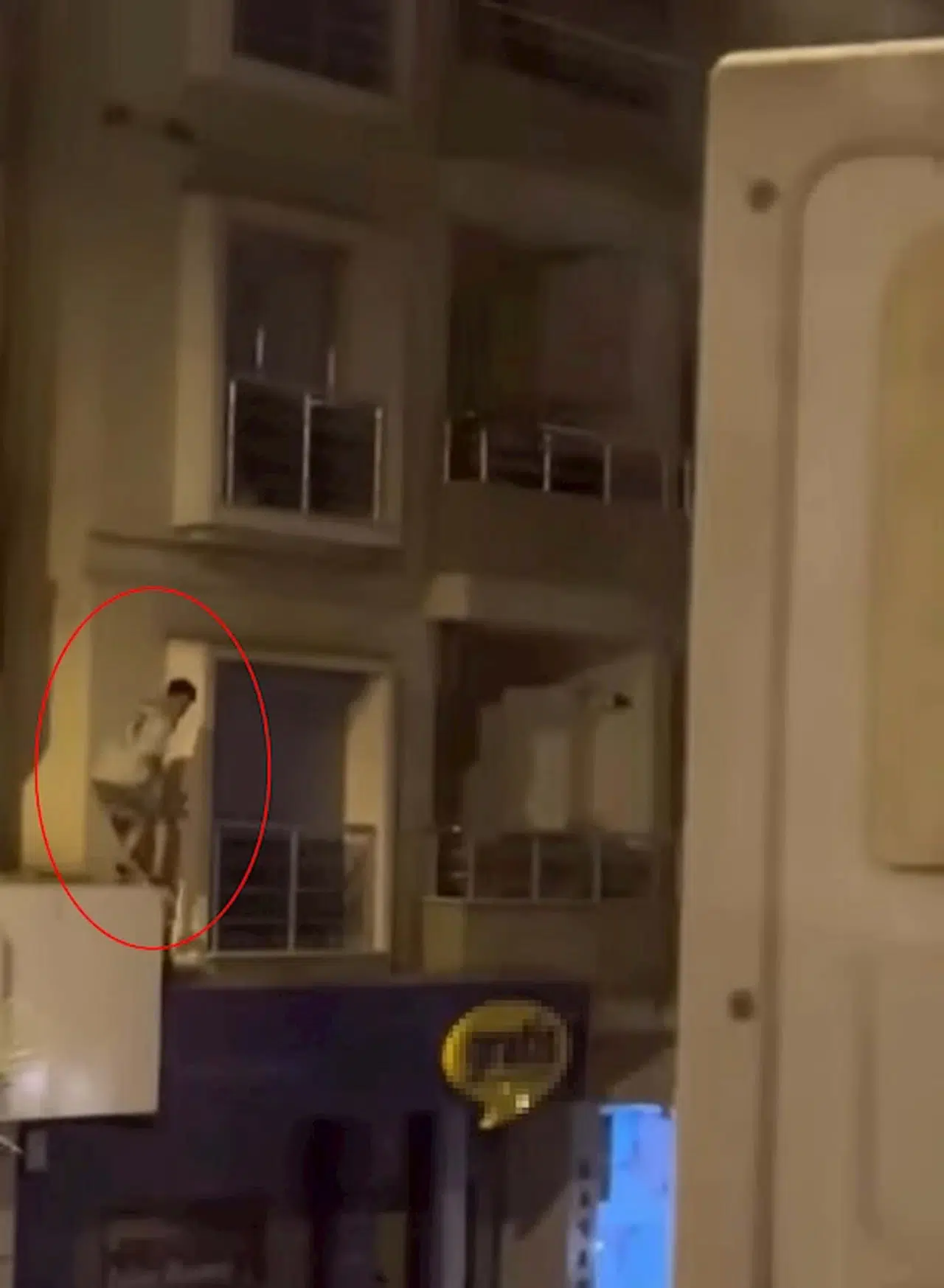 MANİSA, (DHA)- MANİSA'da, apartmanın 1'inci katına giren hırsızlık şüphelisi, polislerin geldiğini görünce önce bitişikteki binanın balkonuna, ardından balkonun korkuluklarına tutunup 5 kat tırmanıp çıktığı çatıdan diğer binalara geçip kaçtı.