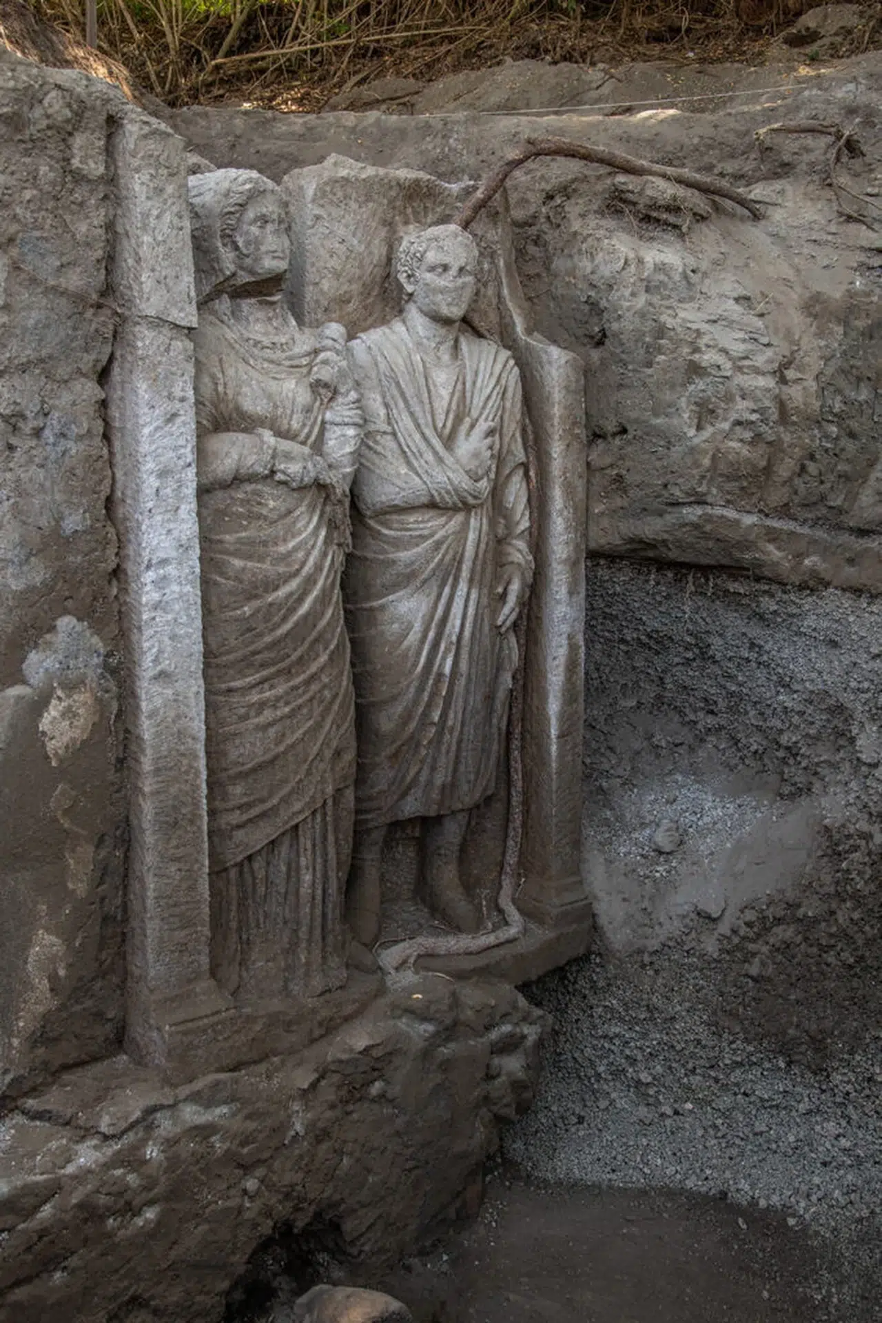 Arkeologlar, kadın ve toga giymiş bir erkeğin mermer cenaze heykellerinin, MS. 79'da Vezüv Yanardağı patladığında yıkılan antik kentteki rahibelerin sahip olduğu güce yeni bir ışık tuttuğunu belirtti. Restorasyon çalışmalarına başlanması için Pompeii kazılarının ‘Palestra Grande'sine taşına heykeller 16 Nisan'da açılacak olan ‘Essere donna nell'antica Pompei’ (Antik Pompeii'de kadın olmak) sergisinin öne çıkan eserleri olacak.