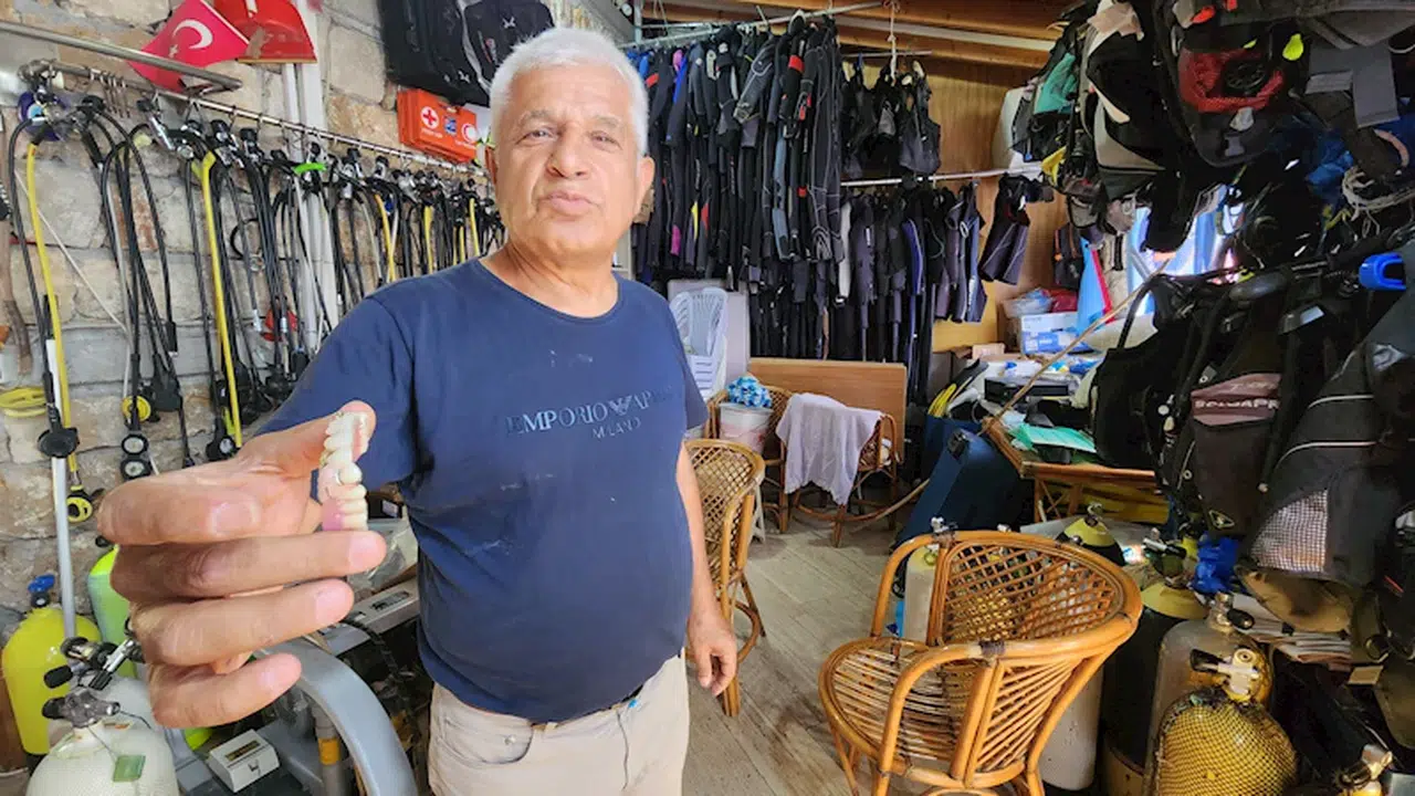 Alparslan ÇINAR/ANTALYA, (DHA)- AKDENİZ Üniversitesi Öğretim Üyesi Prof. Dr. Mehmet Gökoğlu, Konyaaltı Sahili’nde yaptığı inceleme dalışında üst çene protez diş takımı buldu. Takım dişi üniversitedeki odasına götüren Prof. Dr. Gökoğlu, “Yeni bir takım dişin maliyetli olduğunu düşündüm. Sahibi eğer hala arıyorsa benden teslim alabilir" dedi.