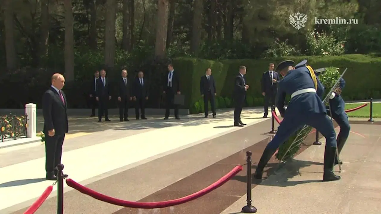 Rusya Devlet Başkanı Putin’in Azerbaycan’daki temasları başladı. Putin, ilk olarak Azerbaycan'ın eski Cumhurbaşkanı ve ulusal lideri Haydar Aliyev’in mezarını ziyaret ederek çelenk bıraktı. Putin daha sonra Zağulba Sarayı’na ulaştı ve burada Azerbaycan Cumhurbaşkanı İlham Aliyev tarafından törenle karşılandı.