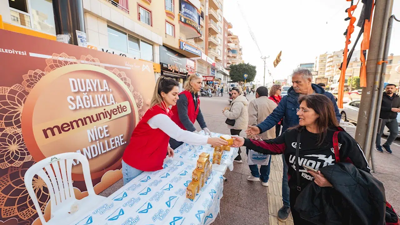 MERSİN, (DHA)- MERSİN'de Büyükşehir Belediyesi, üç ayların başlangıcı ve Regaip Kandili dolayısıyla merkez ilçeler başta olmak üzere birçok ilçede vatandaşlara 15 bin kandil simidi dağıttı.