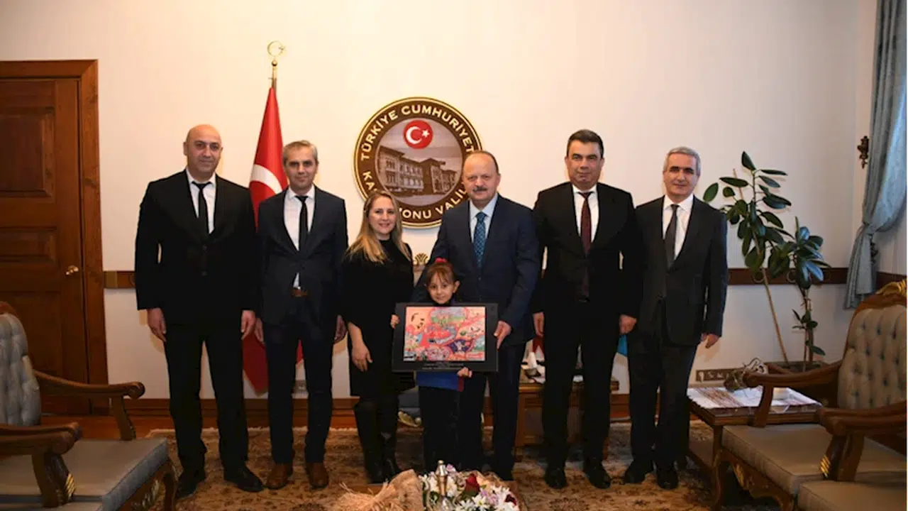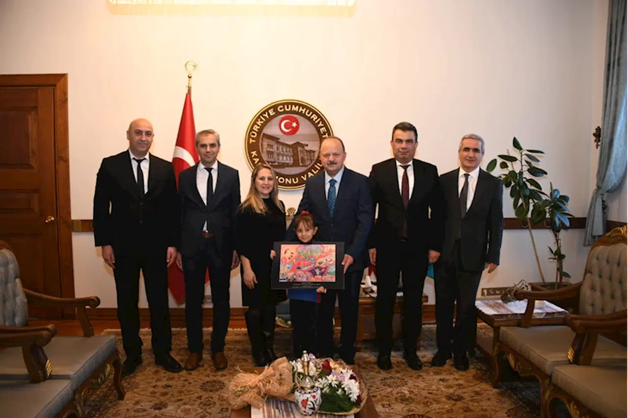 KASTAMONU (AA) - Kastamonu Valisi Meftun Dallı, Cumhuriyet'in Yeni Yüzyılı Resim Yarışması'nda Türkiye ikincisi olan Güneş Kuruoğlu'nu makamında kabul etti.