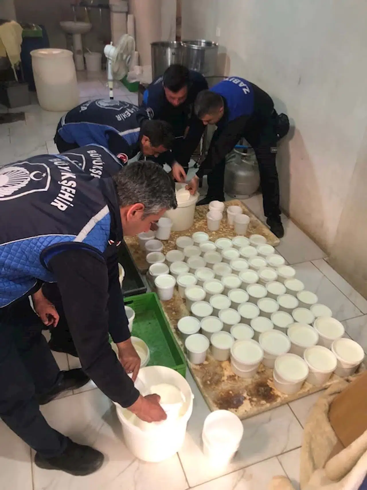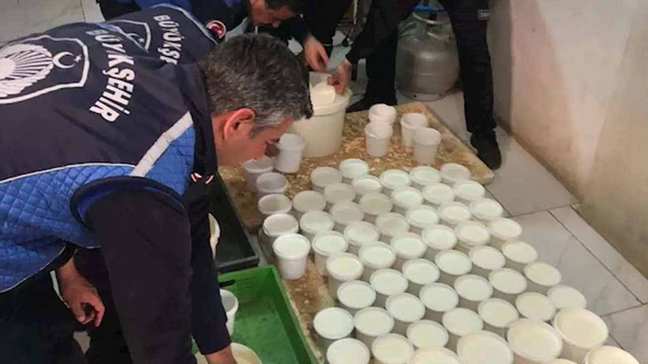 Ferhat DERVİŞOĞLU/REYHANLI(Hatay), (DHA- HATAY’ın Reyhanlı ilçesinde, ekiplerin yaptıkları denetimde sağlıksız koşullarda üretildiği belirlenen 220 kilogram süt ve süt ürününe el konularak imha edildi.