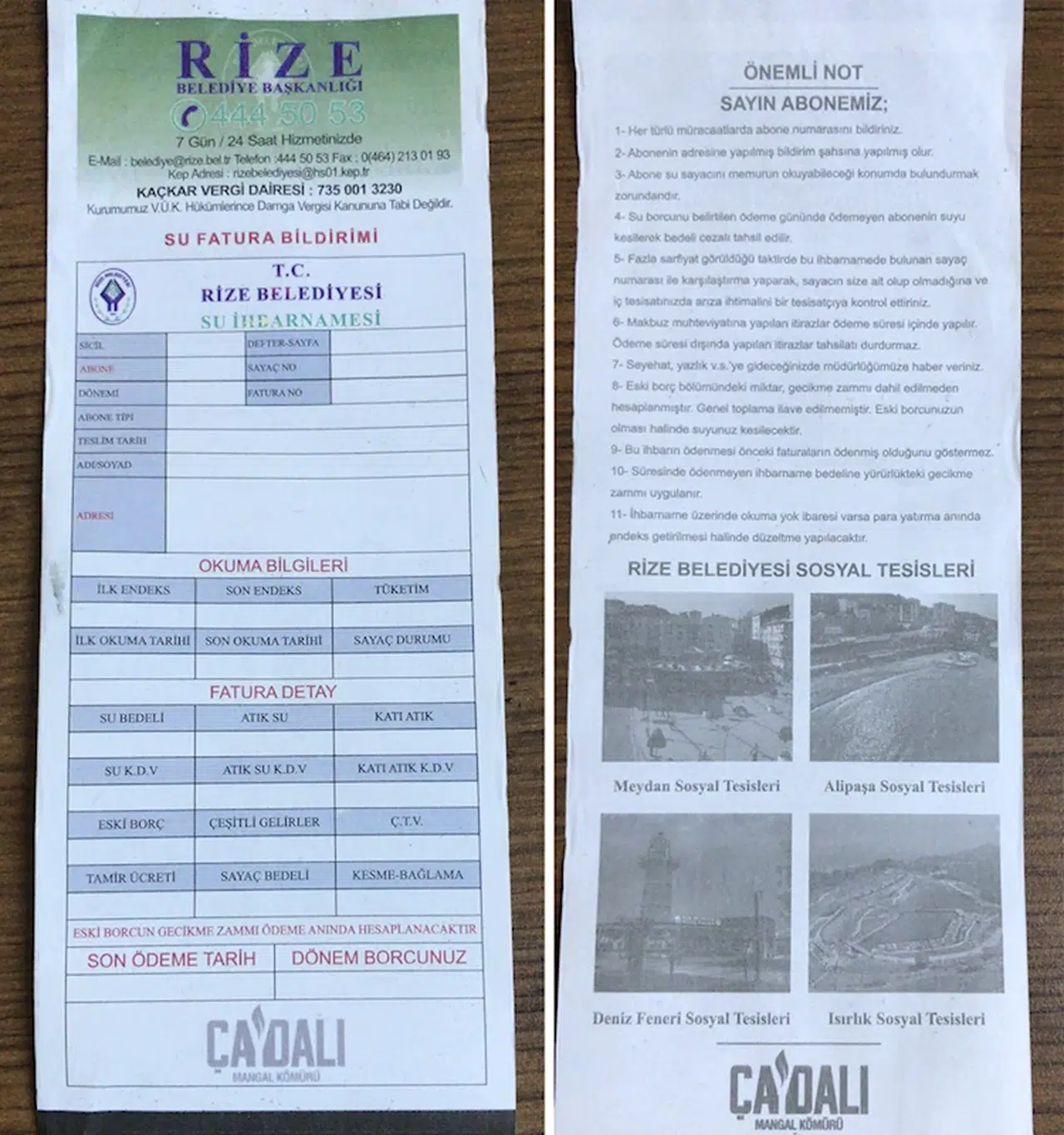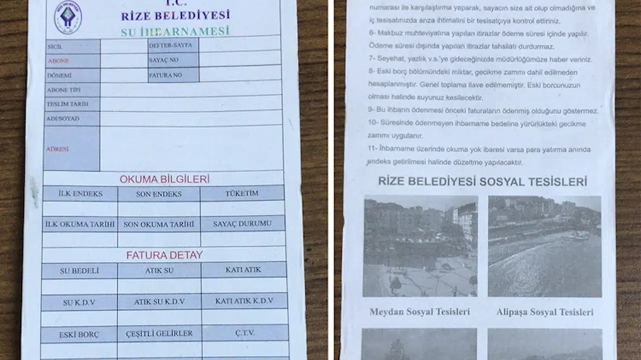 Rize Belediyesi'nden su faturalarında yer aldığı iddia edilen reklamla ilgili açıklama: