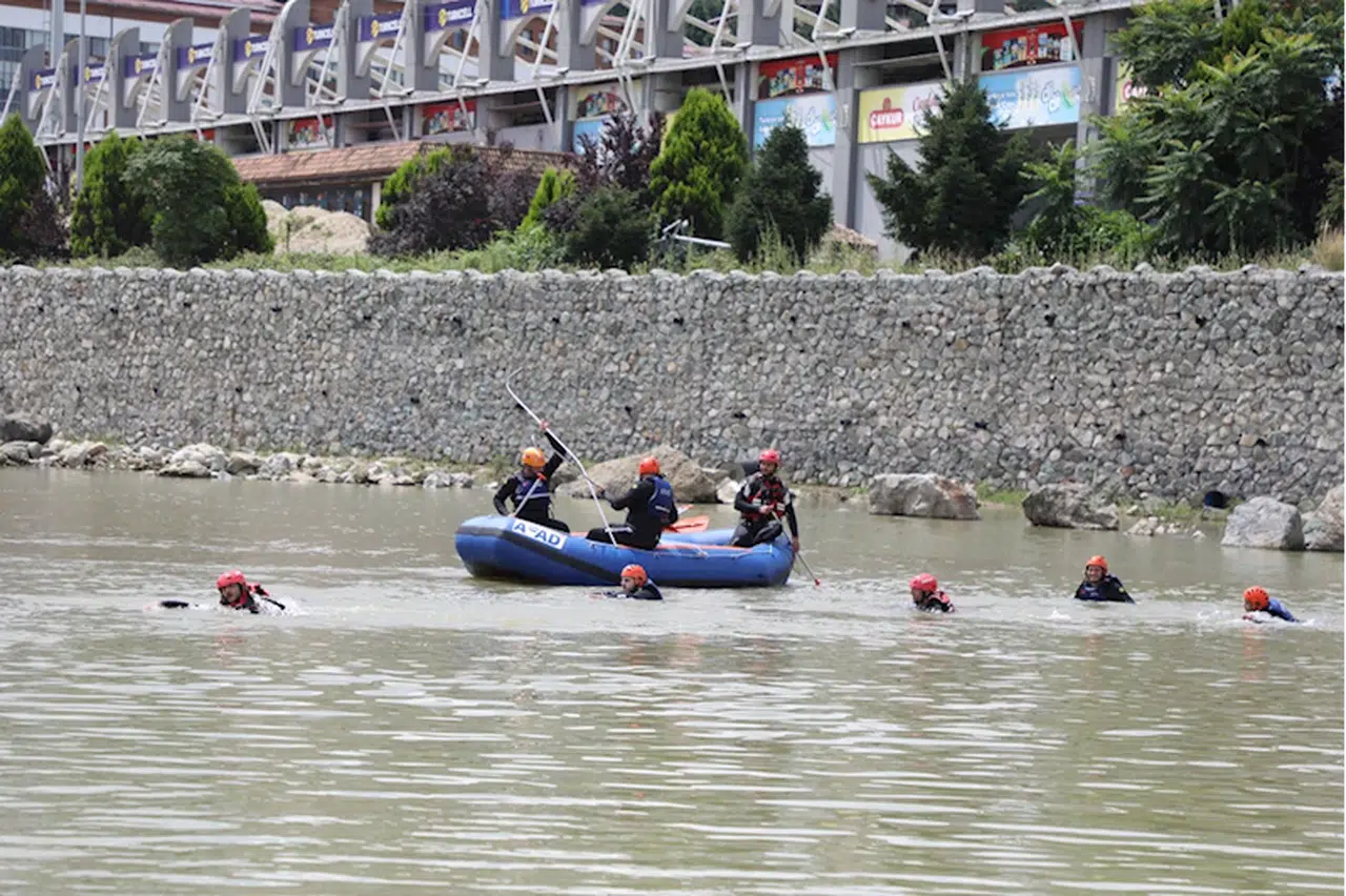 Kısa sürede olaya müdahale eden ekiplerin otomobil üzerindeki kişiyi kurtardığı, sel sularına kapılan kişilerin ise cesedini kıyıya çıkardığı tatbikat, gerçeği aratmadı.