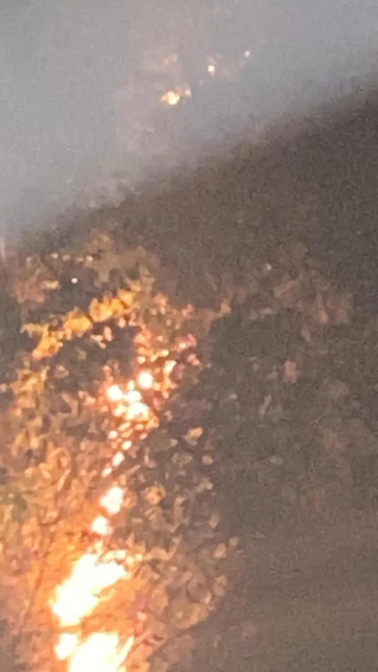 Öte yandan ormanlık alandaki yangın köy merkezinden vatandaşların cep telefonu kamerasıyla görüntülendi. (DHA)