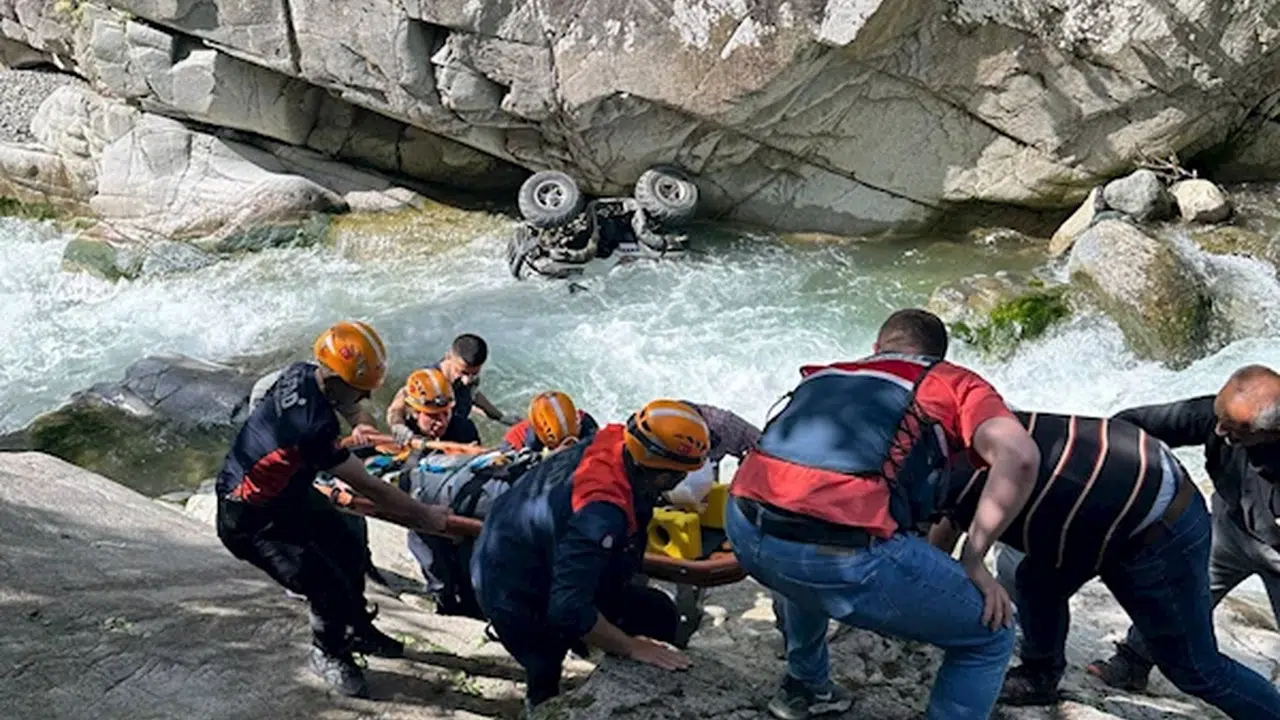 Kaza, Çayeli ilçesi Çataldere köyünde meydana geldi. Efe Karakaş idaresindeki arazi aracı UTV, sürücüsünün kontrolünü kaybetmesiyle yoldan çıkıp Senoz Deresi'ne uçtu. Derede yan yatan UTV'nin sürücüsü Karakaş, yaralandı. İhbarla olay yerine AFAD ekipleri sevk edildi. Ekiplerin dereden çıkardığı Efe Karakaş, ambulansla İshakoğlu Çayeli Devlet Hastanesi'ne kaldırılıp tedaviye alındı. (DHA)