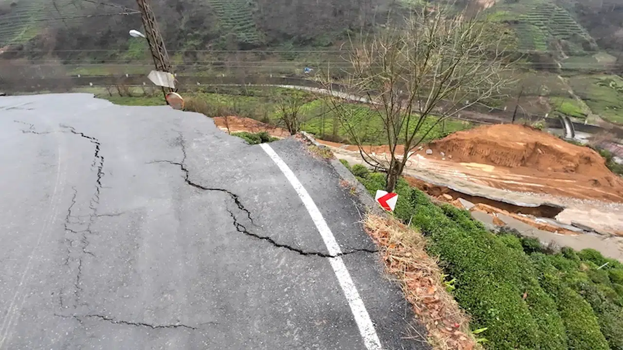 Mehmet Can PEÇE/DEREPAZARI (Rize), (DHA)- RİZE'nin Derepazarı ilçesinde, sağanak sonrası meydana gelen heyelanda yolun bir bölümü çöktü. Elektrik ve doğal gaz kesintilerinin yaşadığı mahallede, yol ulaşıma kapanırken; ekipler ise bölgede inceleme çalışmaları başlattı.