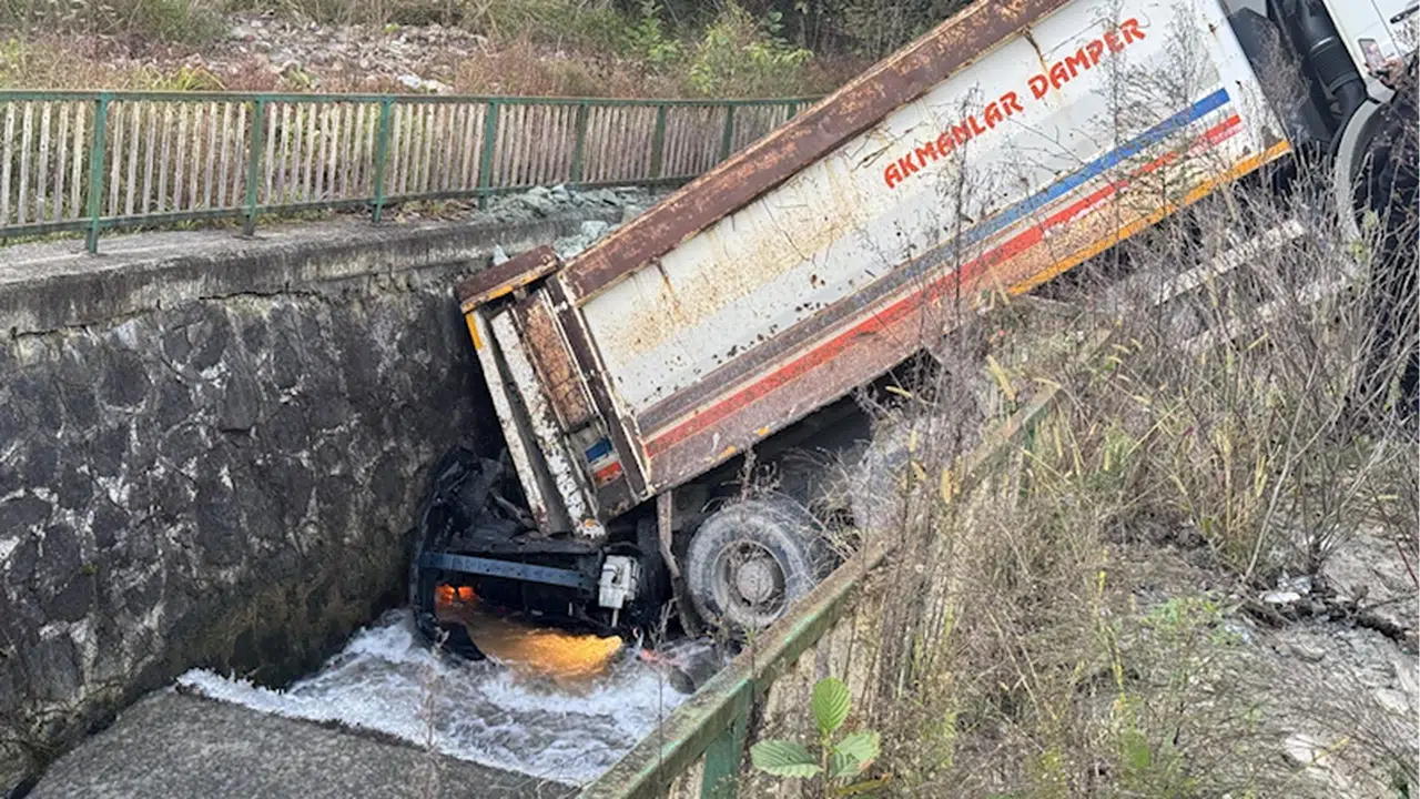 Kayan kamyon yol kenarında park halindeki Murat Ö'ye ait 06 CAV 521 plakalı otomobile de çarpıp dereye devrildi.