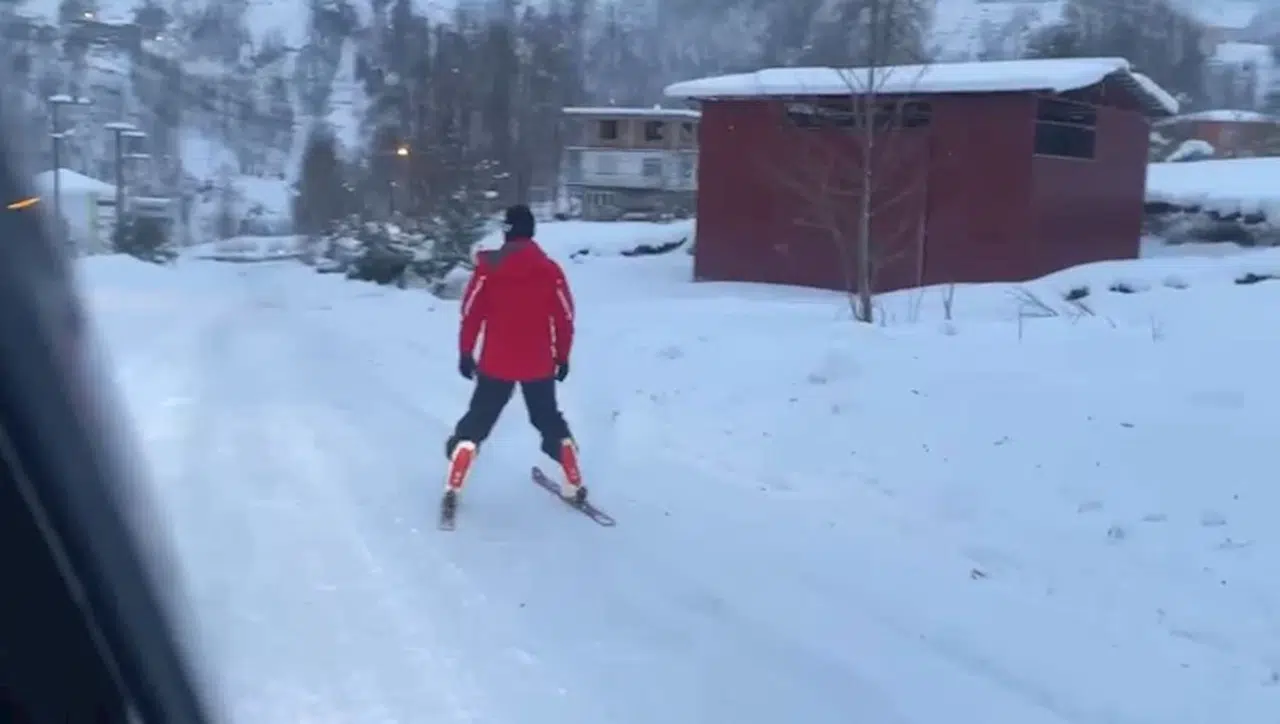 Mehmet Can PEÇE/RİZE, (DHA)- RİZE’de amatör kayak sporcusu Yasin Çapoğlu, yoğun kar yağışı sonrası kayak takımlarıyla kayarak gittiği marketten alışveriş yaptı. O anlar, cep telefonuyla görüntülendi. Çapoğlu, “Uzun zaman sonra böylesine güzel bir kar manzarasında vakit geçirmek unutulmaz bir deneyimdi” dedi.