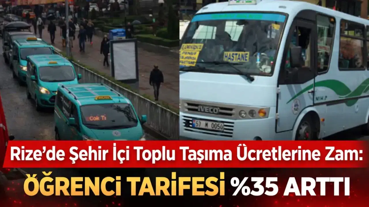 Rize Belediyesi, şehir içi toplu taşıma ücret tarifesinde güncellemeye gitti. Şehir içi dolmuş, taksi dolmuş ve halk otobüsü taşımacılığı yapan kooperatiflerin talepleri doğrultusunda belirlenen yeni tarifeler, belediye meclisinde alınan kararın ardından netleşti.Yeni düzenleme kapsamında S.S. 8 Nolu Şehir İçi Motorlu Taşıyıcılar Kooperatifi, S.S. 82 Nolu Karayolu Yolcu Taşıma Kooperatifi (Taksi Dolmuş) ve S.S. 44 Nolu Motorlu Taşıyıcılar Kooperatifi tarafından sunulan talepler değerlendirilerek toplu taşıma ücretlerine zam yapıldı.Sivil Ücretler 35 TL’ye YükseldiKarara göre daha önce 23 TL olan sivil kısa mesafe ücreti %30,43 artışla 30 TL’ye yükseltildi. Şehir içi sivil uzun mesafe ücreti ise 27 TL’den %29,62 oranında artarak 35 TL olarak belirlendi.