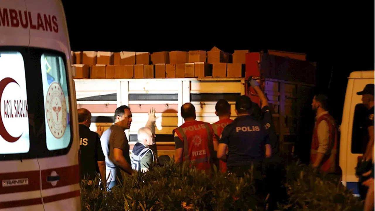 Rize'de tuğla taşıyan tırın dorsesinde 30 düzensiz göçmen yakalandı