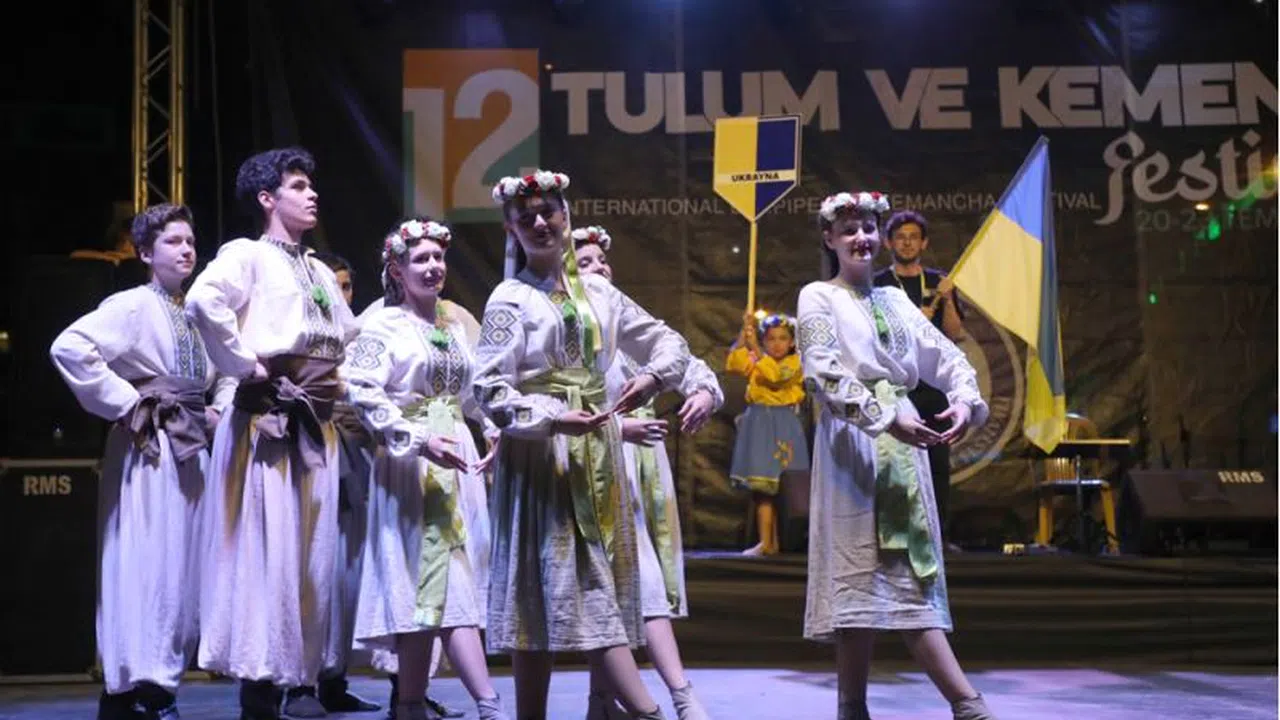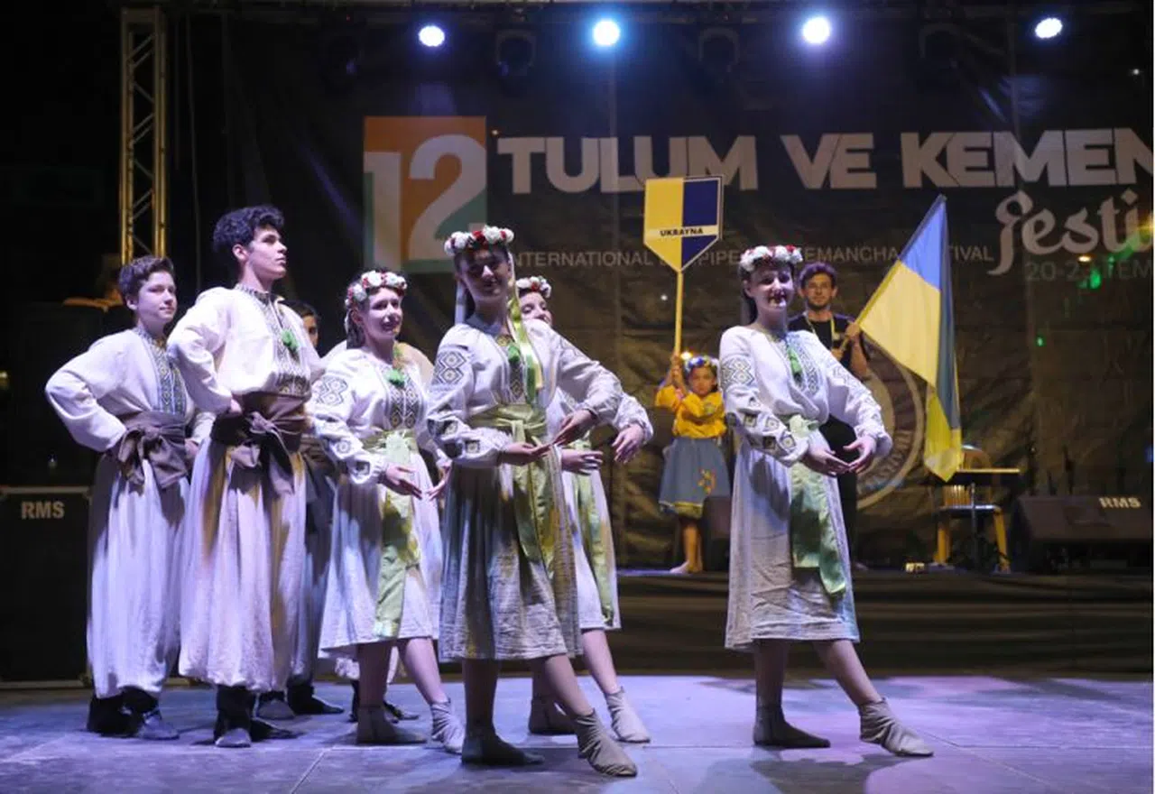RİZE (AA) - Rize'de, "12. Tulum ve Kemençe Festivali"ne katılan Ukraynalı halk dansları topluluğu, savaş karşıtı dans gösterisi yaptı.