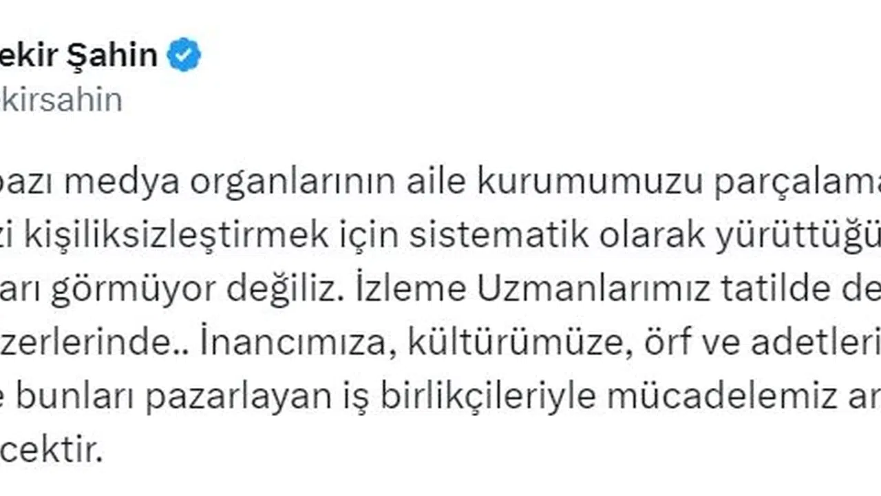 RTÜK Başkanı Şahin, bir haber sitesinde; lezbiyen, gey, biseksüel, trans ve interseks (LGBTİ) ilişkilerini anlatan dizi ve film önerilmesiyle ilgili sosyal medya hesabından açıklama yaptı. Şahin, açıklamasında, "Batı fonlu bazı medya organlarının aile kurumumuzu parçalamak ve gençlerimizi kişiliksizleştirmek için sistematik olarak yürüttüğü sapkın kampanyaları görmüyor değiliz. İzleme Uzmanlarımız tatilde de çalışıyor. Gözümüz üzerlerinde. İnancımıza, kültürümüze, örf ve adetlerimize aykırı yapımlar ve bunları pazarlayan iş birlikçileriyle mücadelemiz aralıksız devam edecektir" ifadelerini yer verdi. (DHA)