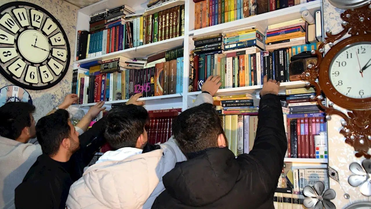 Barış KUL/ERCİŞ (Van), (DHA)- VAN'ın Erciş ilçesinde 10 yıldır saat atölyesi işleten Abdurrezak Çelik (26), dükkanının bir bölümünü evinden getirdiği kitaplarla mini kütüphaneye dönüştürdü. Kurduğu sobayla dükkanını sıcak bir mekana dönüştüren Çelik, müşterilerine hem kitap okuma imkanı sunuyor, hem de zaman zaman çay ikramında bulunuyor.