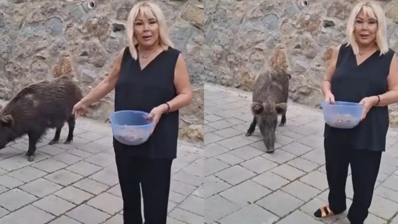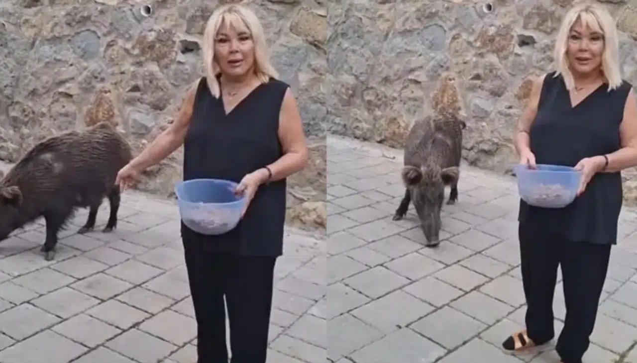Safiye Soyman Bodrum’da Yaban Domuzunu Ellerinden Besledi: O Anlar Gündem Oldu