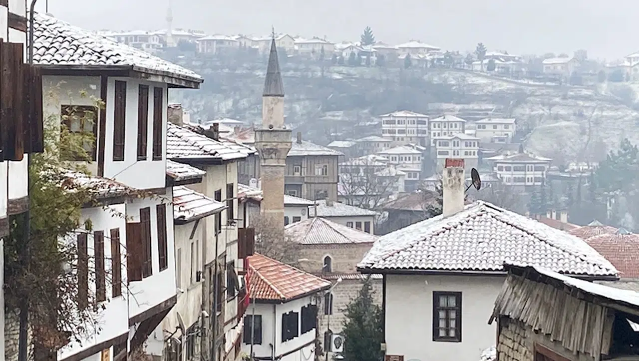 Karabük'ün UNESCO Dünya Miras Listesi'nde yer alan ilçesi Safranbolu'da tarihi çarşı bölgesinde bulunan konaklar, kar yağışı ile birlikte beyaza büründü. Safranbolu'nun sembolü olan tarihi konakların çatıları karla kaplandı. Osmanlı'dan kalma mimarisi ile yerli ve yabancı turistlerin ilgisini çeken tarihi konaklar, kar yağışıyla birlikte güzel manzaralar oluşturdu. Kış mevsiminde de ziyaretçilerini ağırlayan Safranbolu, tarihi dokusu ve doğal güzellikleriyle her mevsim ziyaretçilerin ilgisini çekiyor. (DHA)
