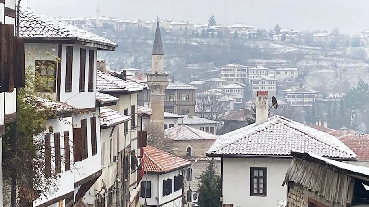 Murat ÖZELCİ/SAFRANBOLU (Karabük), (DHA)- KARABÜK’te gece saatlerinden itibaren etkili olan kar yağışıyla Safranbolu ilçesinde bulunan tarihi konaklar beyaza büründü.