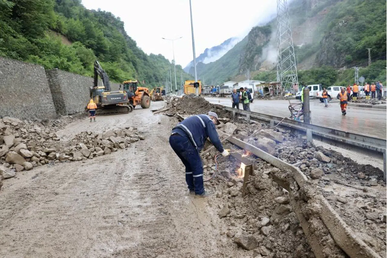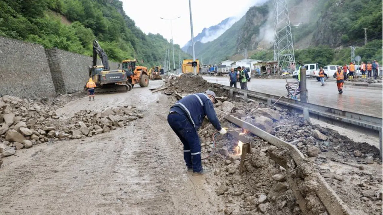 Karayolları ekipleri, Trabzon-Gümüşhane kara yolunun 36'ncı kilometresinde sel birikintisi dolayısıyla ilk etapta iki yönlü ulaşıma kapatılan, iş makineleri yardımıyla yapılan çalışmaların ardından kontrollü olarak açılan yoldaki çalışmalarını sürdürüyor.