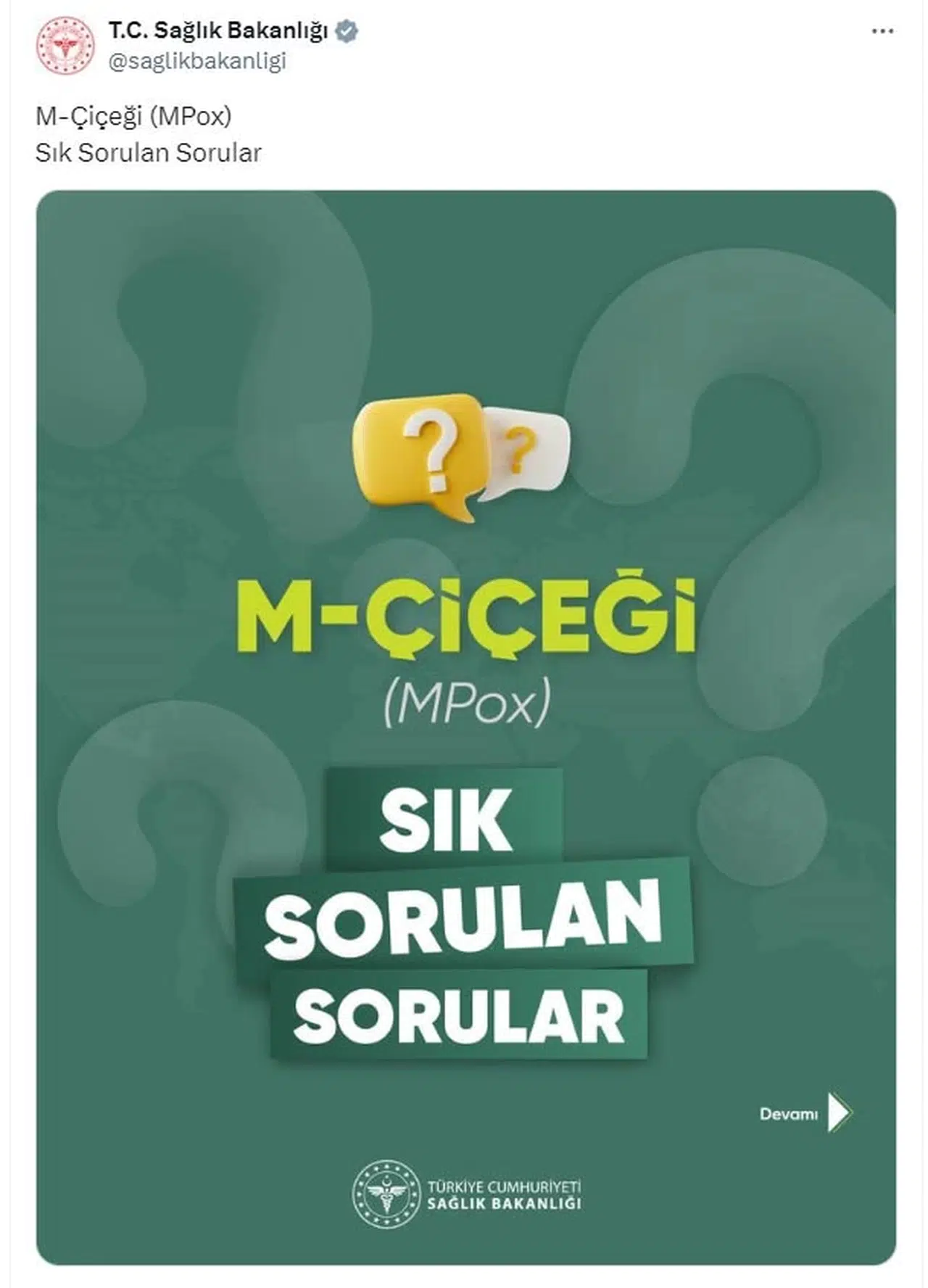 Sağlık Bakanlığı tarafından, toplumun maymun çiçeği hakkında en çok merak ettiği konular belirlenerek 'sık sorulan sorular' oluşturuldu. 11 soru, maymun çiçeği rehberine göre cevaplanarak, söz konusu içerik Sağlık Bakanlığı sosyal medya hesaplarından paylaşıldı. Sorular ve cevapları şöyle:
