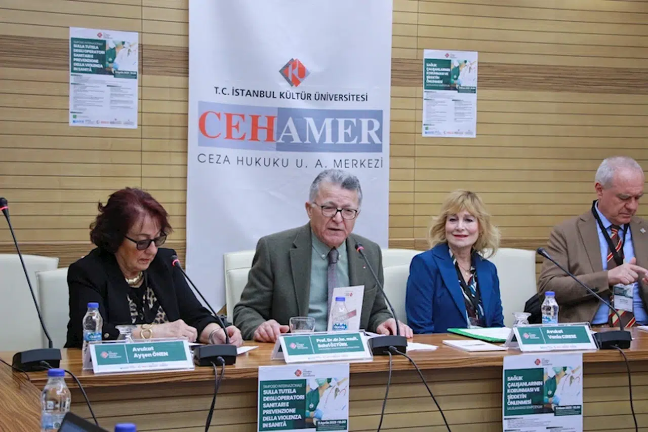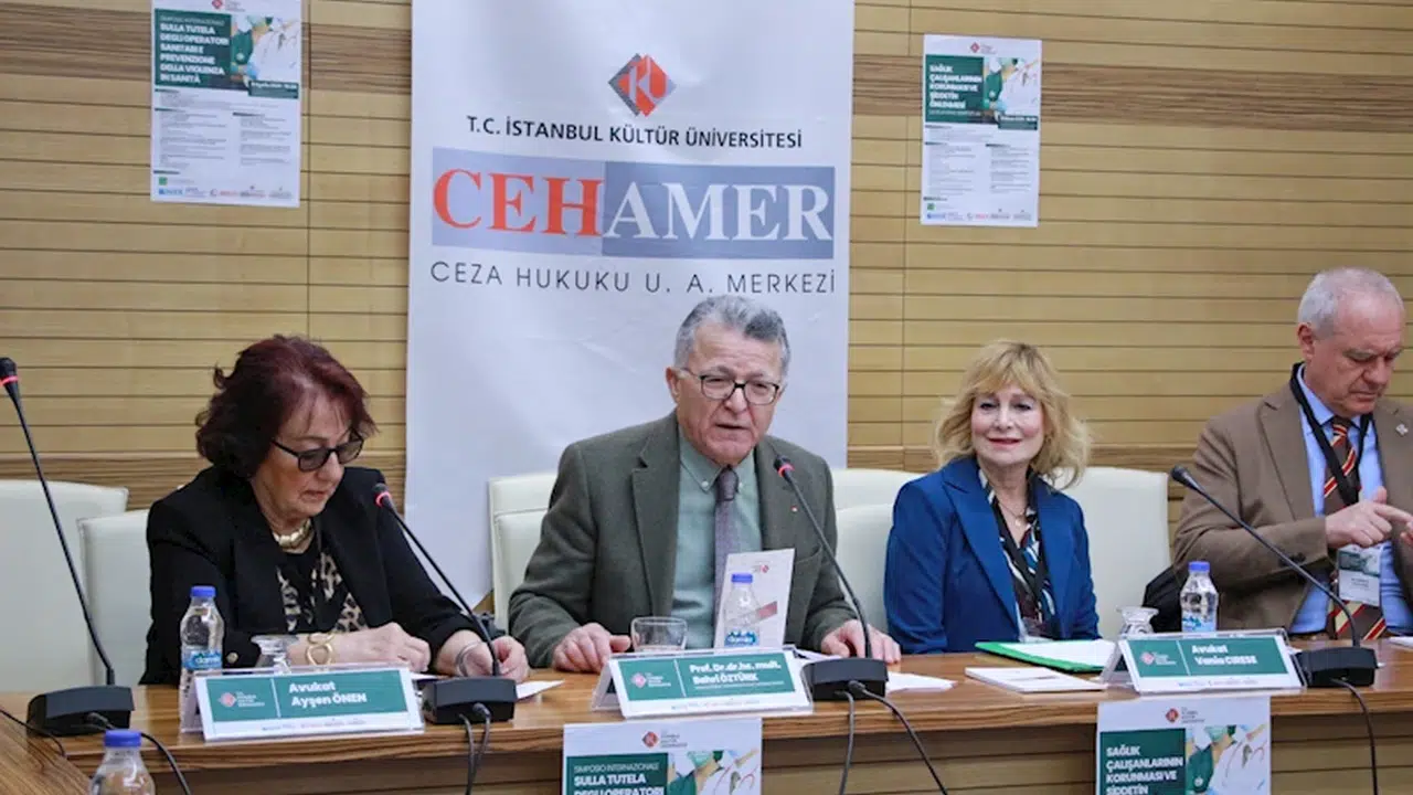 Hilal BEKYÜREK-Uğur GÜLBOY/İSTANBUL,(DHA)- İSTANBUL Kültür Üniversitesi (İKÜ) tarafından ‘Sağlık Çalışanlarının Korunması ve Şiddeti Önleme Üzerine’ başlıklı uluslararası sempozyum düzenlendi. Alanında uzman isimlerin konuşmacı olarak yer aldığı oturumlarda ‘Türkiye’de ve İtalya’da Hekim ve Sağlık Çalışanlarının Korunmasına Yönelik Güncel Sorunlar ve Bakış Açıları’, ‘Sağlık Çalışanlarına Yönelik Şiddet: Sorunlar ve Korunma Yöntemleri’ konuları ele alındı. Açılış konuşmasını gerçekleştiren İKÜ Hukuk Fakültesi Dekanı Prof. Dr. Dr. Hc. Mult Bahri Öztürk, “Ben 50 yıllık meslek hayatımda kanuna bakarak suç işleyen bir tek fail görmedim. Onun için cezaları belli nispette arttırmak işe yaramıyor. Hekimlerimizin hastayla olan iletişimi nasıl kuracakları konusunda meslek içi eğitimler alması gerekiyor” dedi.