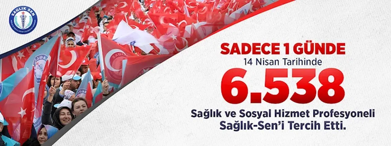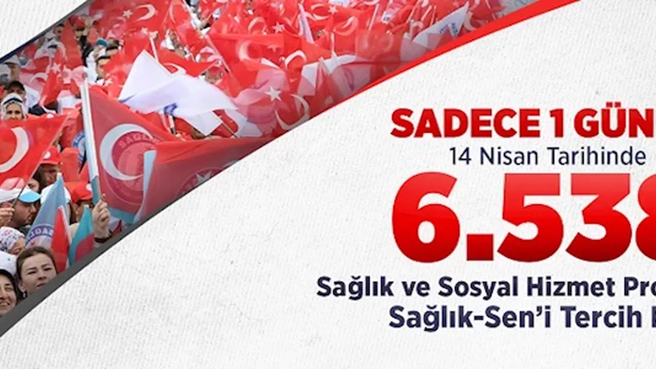 ANKARA, (DHA)- SAĞLIK-Sen Genel Başkanı Mahmut Faruk Doğan, Sağlık-Sen şubelerinin 14 Nisan Pazartesi günü Türkiye genelinde 6 bin 538 sağlık ve sosyal hizmet profesyonelinin sendikaya üye olduğunu duyurdu.