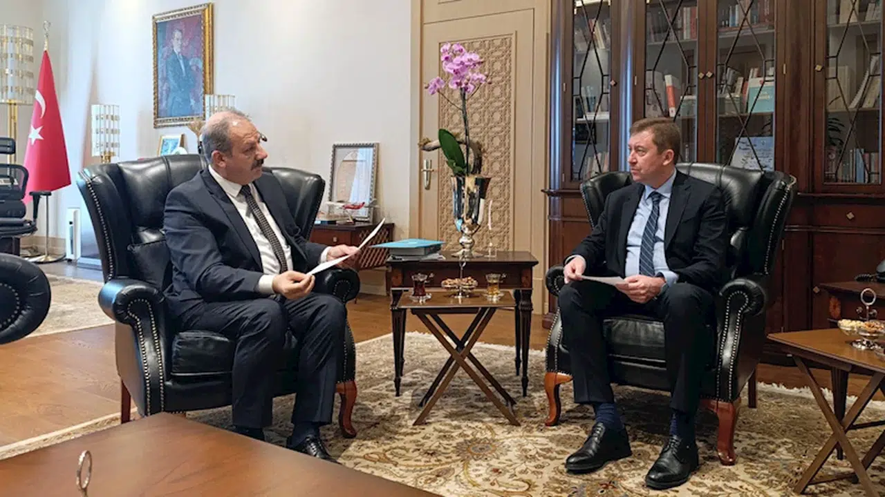 ANKARA, (DHA)- SAĞLIK-Sen Genel Başkanı Mahmut Faruk Doğan beraberinde Genel Başkan Yardımcısı Mustafa Irgatoğlu ve Sağlık-Sen Hekim Komisyonu Başkanı Dr. Hüseyin Alperen Güldiken ile Cumhurbaşkanlığı İdari İşler Başkanı Hakkı Susmaz’ı ziyaret etti.