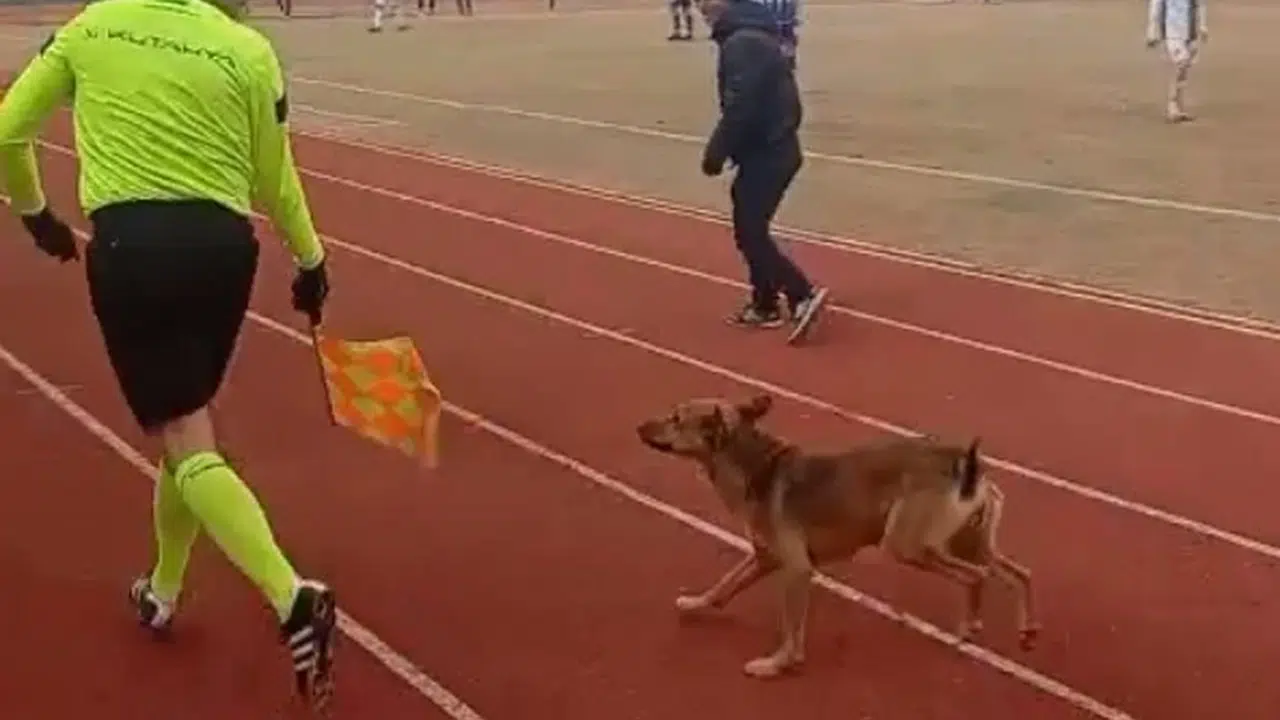 Sahaya giren köpeği yan hakem çıkardı; o anlar kamerada