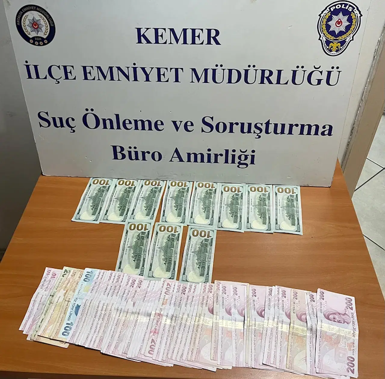 Kemer ilçe merkezinde esnafa sahte para vererek alışveriş yapan kişiler olduğu bilgisi üzerine Kemer Cumhuriyet Başsavcılığı talimatlarıyla İlçe Emniyet Müdürlüğü ekipleri çalışma başlattı. Yürütülen çalışma sonucunda 2 şüphelinin sahte dolarlarla esnaftan alışveriş yaptığı belirlendi. Şüphelilerin O.K. ve S.C. olduğunu tespit eden polis kullandıkları araç ve hareketlerini takibe aldı. O.K. ve S.C. polisin operasyonuyla yakalanarak gözaltına alındı. 2 şüphelinin yapılan üst aramalarında sahte 1300 dolar ve bu dolarları bozdurmak suretiyle elde ettikleri 10 bin 500 TL ele geçirildi. O.K. ve S.C. polis merkezindeki işlemlerinin ardından çıkarıldıkları mahkemece tutuklandı. (DHA)