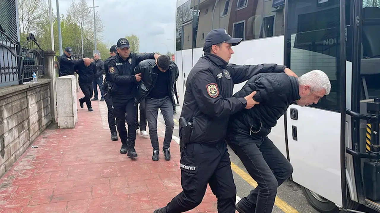 Sakarya'nın Serdivan ilçesinde iki aile arasında çıkan, 5 kişinin yaşamını yitirdiği, 6 kişinin de yaralandığı silahlı kavgaya ilişkin adliyeye sevk edilen 8 şüpheli tutuklandı. (DHA)