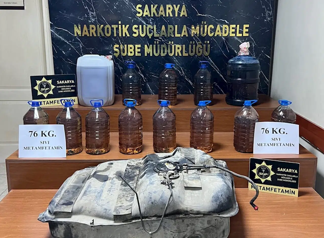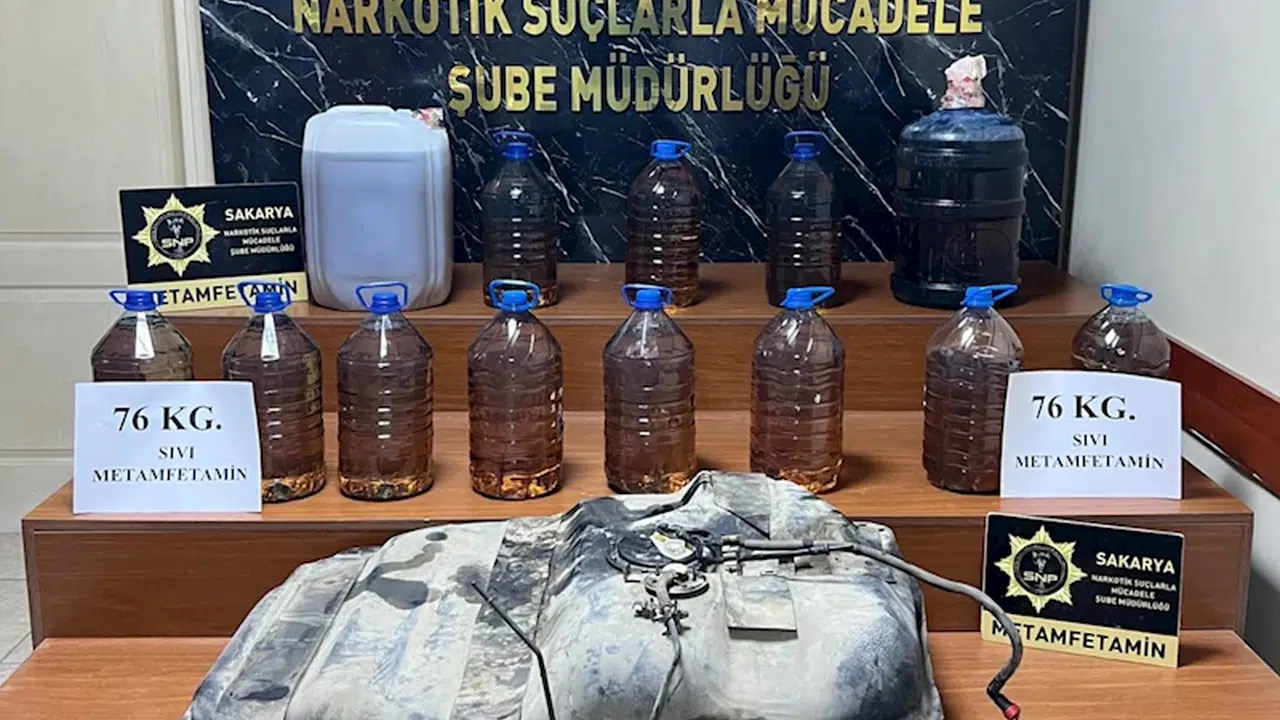 Sakarya İl Emniyet Müdürlüğü Narkotik Suçlarla Mücadele Şube Müdürlüğü ekipleri, uluslararası uyuşturucu ticareti bağlantıları olduğu tespit edilen 2 şüpheliyi teknik ve fiziki takibe aldı. Şüphelilerin bulunduğu cip, Adapazarı’nda durduruldu. Narkotik köpeği ile araçta yapılan aramada, yakıt deposuna gizlenmiş, 76 kilo sıvılaştırılmış metamfetamin ele geçirildi. Cipte bulunan 2 şüpheli gözaltına alındı. (DHA)